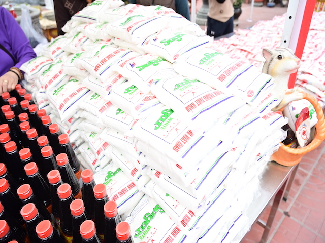 Bà con tới các gian hàng để nhận quà từ Ban tổ chức