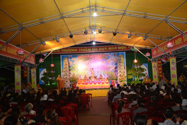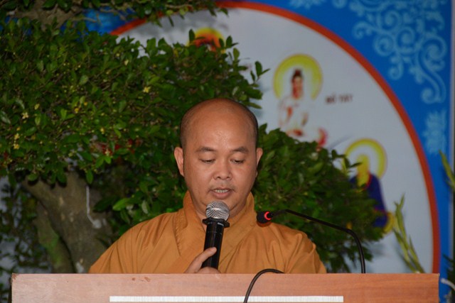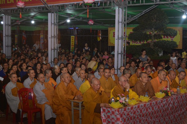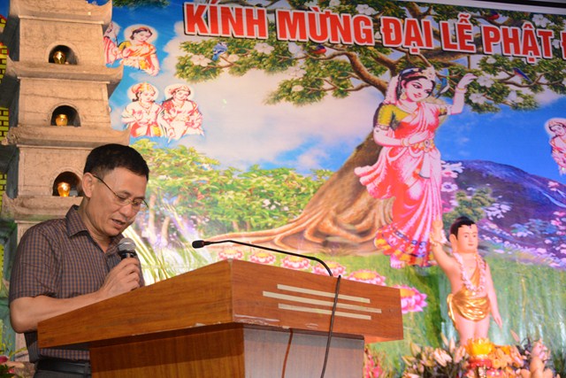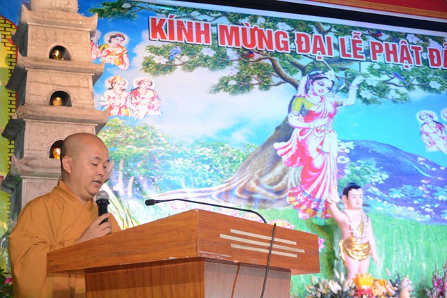 Tiếp đó, Đại đức Thích Giác Huy – Trưởng Ban trị sự GHPGVN huyện An Dương đã lên tuyên đọc Diễn văn Đại lễ Phật đản PL. 2561 – DL. 2017 của Hòa thượng Thích Thiện Nhơn – Chủ tịch HĐTS TƯ GHPGVN. “ Ngày rằm tháng tư năm Đinh Dậu – 2017, Phật lịch 2561, Tăng Ni, Phật tử Việt Nam cùng với những người con Phật khắp nơi trên thế giới hân hoan thành kính đón mừng kỷ niệm ngày Khánh đản lần thứ 2641 của Đức Bổn Sư Thích Ca Mâu Ni. Chúng ta lắng lòng tưởng nhớ đến sự kiện hy hữu, đại sự nhân duyên mà Đức Phật đã ra đời đó là: “Khai thị chúng sanh, ngộ nhập Tri kiến Phật”, cũng như trong Kinh Tăng Chi nói: “Hỡi chúng sanh, có một bậc vĩ nhân, vì hạnh phúc cho chư Thiên, cho số đông, cho loài người mà xuất hiện ở đời, đó là Đức Như Lai Ứng cúng Chánh đẳng Chánh giác”.