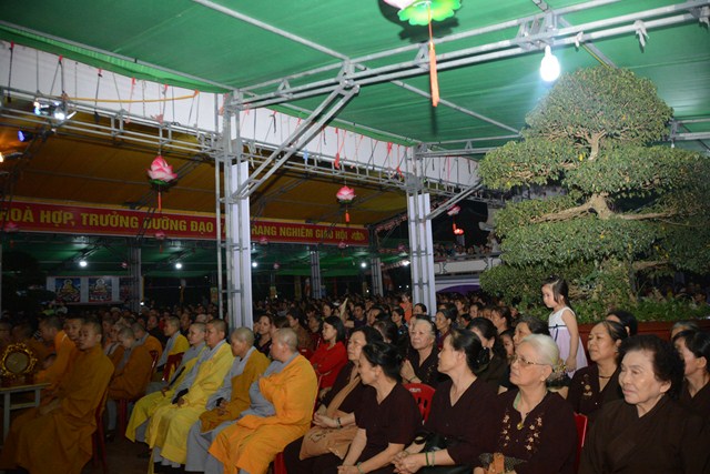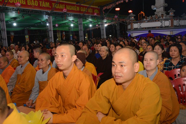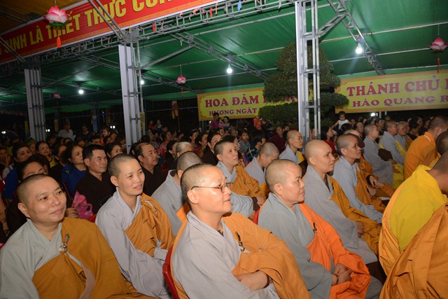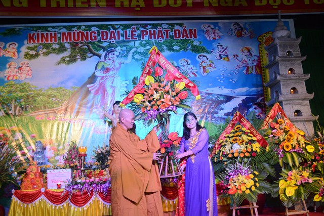 Sau khi chương trình văn nghệ chào mừng ngày đức Phật đản sinh khép lại, chư tôn đức tăng ni đã quang lâm đạo tràng và chính thức cử hành nghi lễ kính mừng Phật đản PL. 2561 – DL. 2017. Thay mặt cho chư tôn đức tăng ni chứng minh, Thượng tọa Thích Thanh Giác – Phó trưởng ban thường trực BTS GHPGVN thành phố Hải Phòng đã cung tuyên thông điệp Phật đản của hòa thượng chủ tịch HĐCM TƯ GHPGVN gửi tăng ni, đồng bào Phật tử trong nước và nước ngoài nhân dịp đại lễ Phật đản PL. 2561 – DL. 2017. Trong thông điệp có ghi: “ “Phật đản là thời gian mỗi người con Phật có cơ hội ôn lại lịch sử của Đức Bản sư để chiêm nghiệm và hành trì, để sống theo lời Ngài chỉ dạy, đi theo con đường Ngài đã đi. Đó là con đường Bát Chính Đạo, con đường Giới – Định – Tuệ. Mỗi chúng ta phải nỗ lực làm cho Đạo Phật xương minh, tiếp tục đóng vai trò quan trọng trong việc đem lại an lạc, hạnh phúc cho bản thân và gia đình, sự phồn vinh, thịnh vượng cho đất nước, và hòa bình cho nhân loại.
