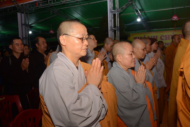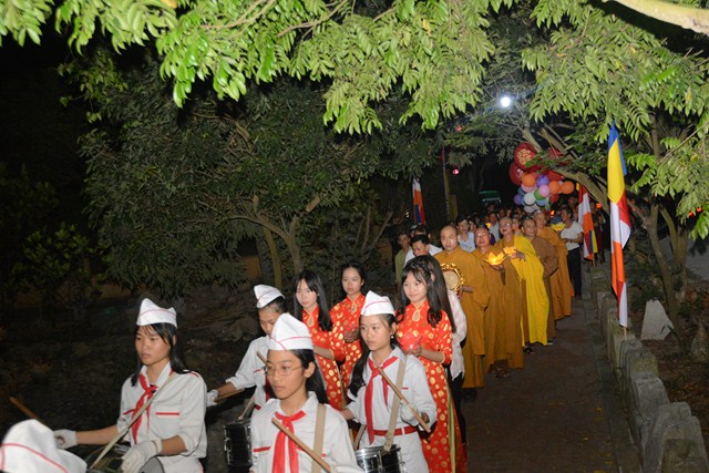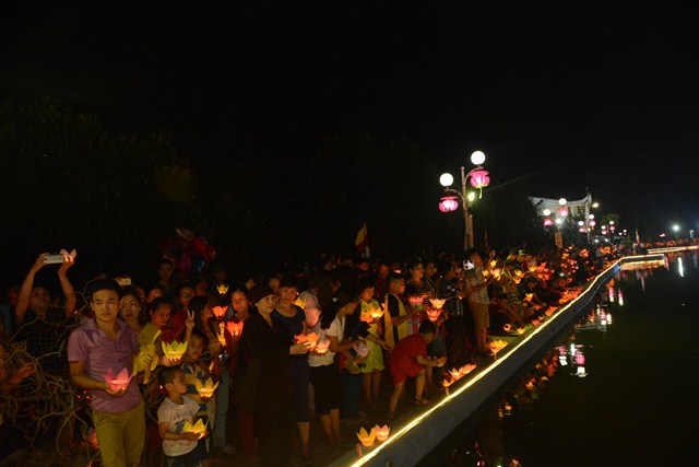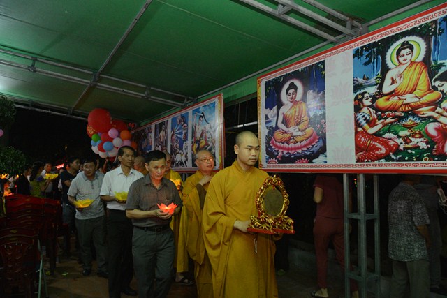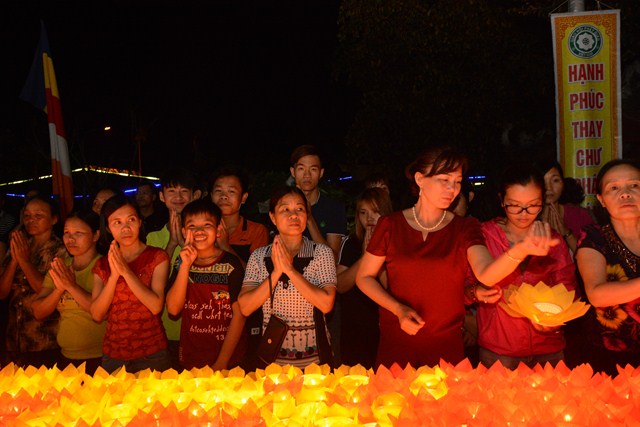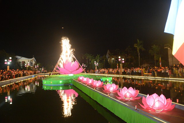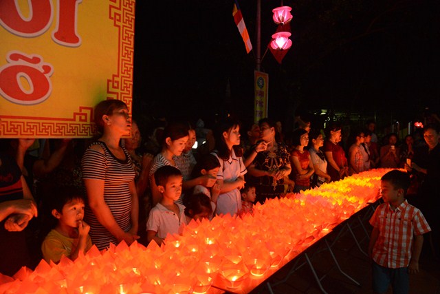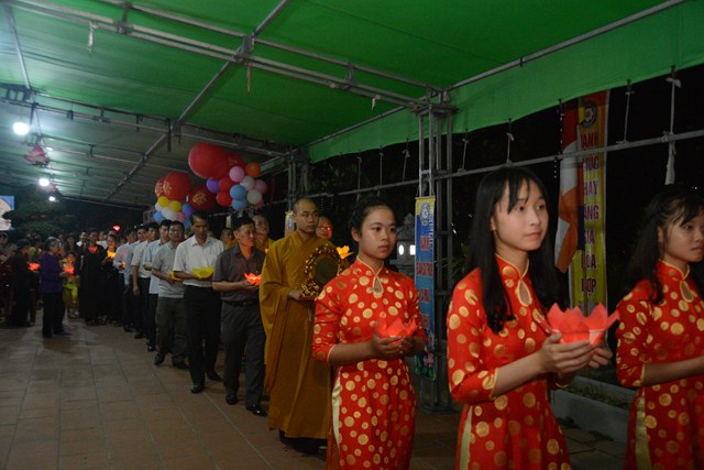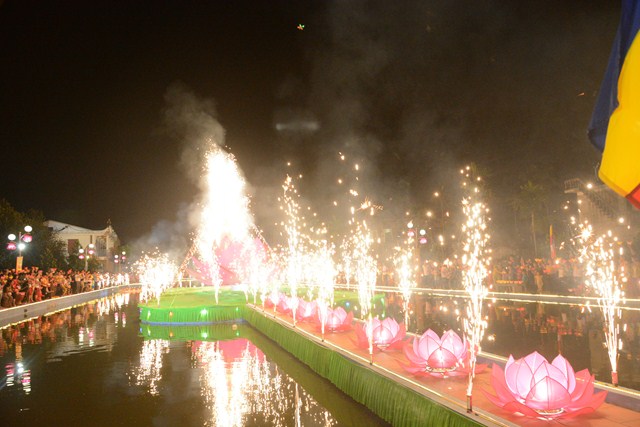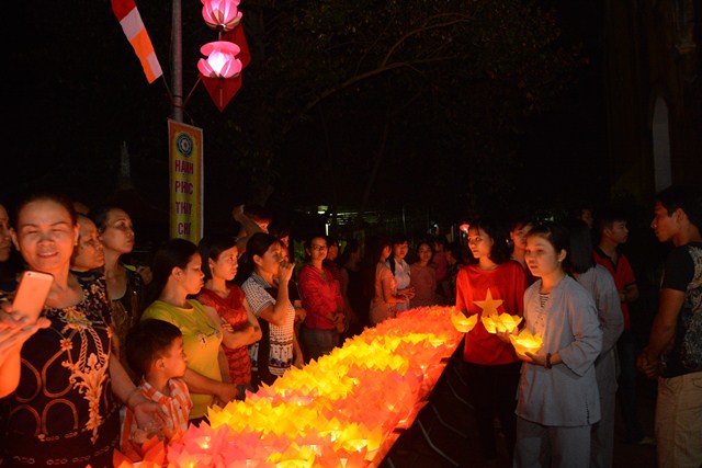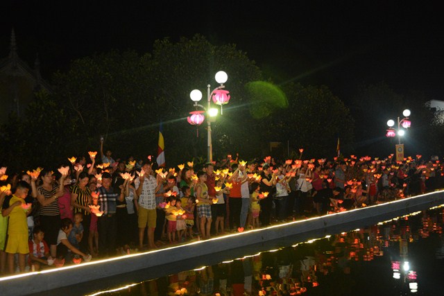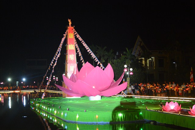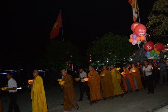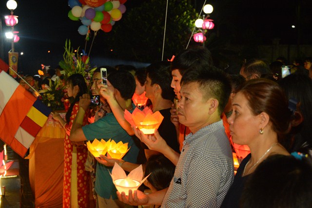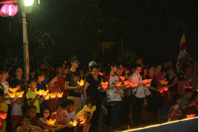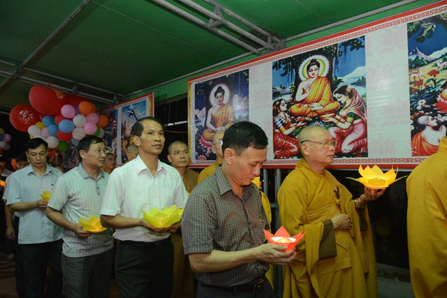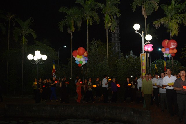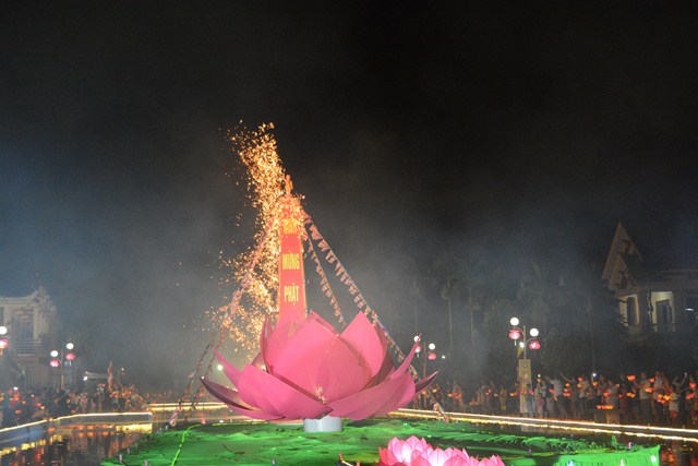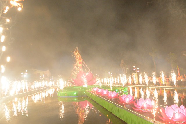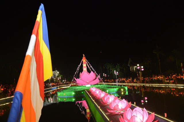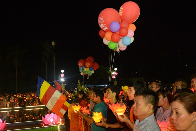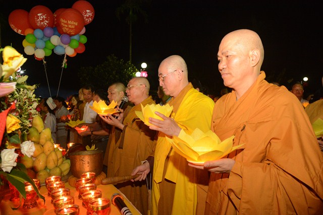 Trước khi kết thúc buổi lễ, chư tôn đức tăng ni hiện tiền, các cấp chính quyền địa phương, các Phật tử có mặt tại buổi lễ đã cử hành nghi lễ niêm hương bạch Phật, thả hoa đăng kỷ niệm ngày đức Phật Thích Ca Mâu Ni đản sinh và thả bóng bay cầu nguyện thế giới hòa bình, chúng sinh an lạc.