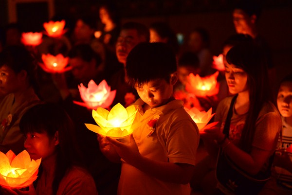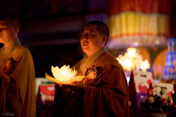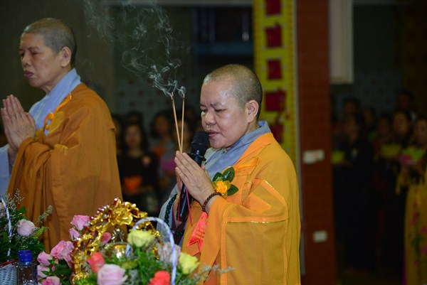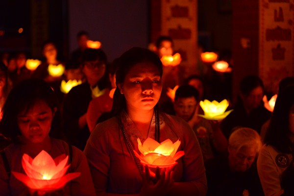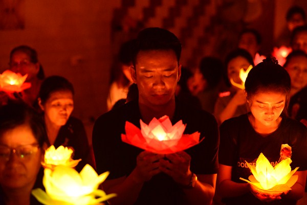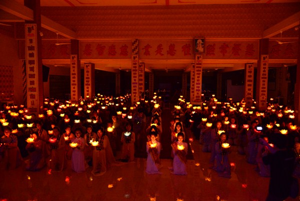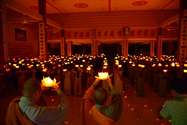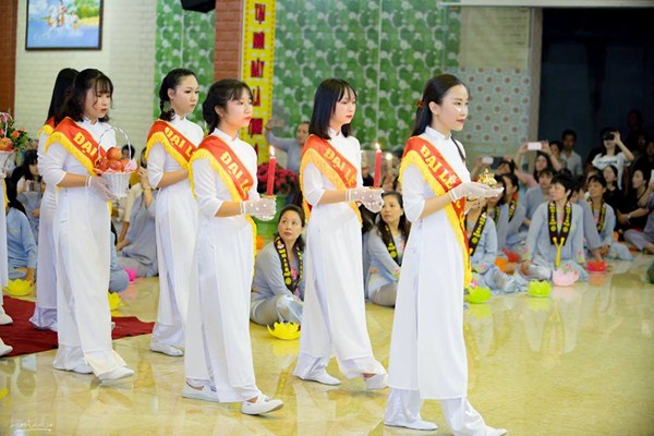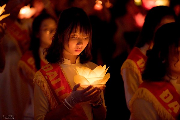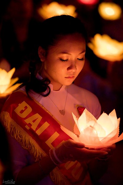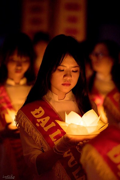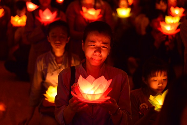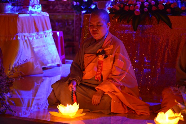 Thời khắc linh thiêng nhất của buổi lễ đã tới khi chư tôn đức Ni hiện tiền cử hành nghi lễ niêm hương bạch Phật, cầu nguyện thế giới hòa bình, chúng sinh an lạc và bắt đầu bước vảo đêm thắp nến tri ân cha mẹ. Ni sư Thích Tâm Chính đại vì cho Ni chúng chùa Vẽ đã xin ánh sáng đầu tiên từ ban Phật rồi truyền ánh sáng đó cho chư tôn đức chứng minh và các em thanh thiếu niên Phật tử, từng ngọn nến lung linh đã dần được thắp sáng khắp giảng đường càng làm cho buổi lễ trở nên linh thiêng và huyền ảo hơn, trên tay mỗi Phật tử là một ngọn đèn hoa đăng tượng trưng cho tình thương của cha mẹ dành cho con cái, mỗi người con sẽ thầm nguyện với lòng mình, nguyện giữ cho ngọn nửa đó để ngọn lửa không bao giờ tắt, cũng như tình thương của cha mẹ dành cho con cái vậy, đó là tình thương bao la, rộng lớn, tình thương không ngơi nghỉ và thầm cầu nguyện cầu ông bà cha mẹ hiện tiền được phúc thọ tăng long, sống vui, sống khỏe bên con cháu.