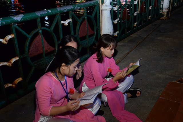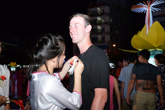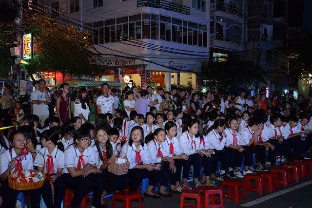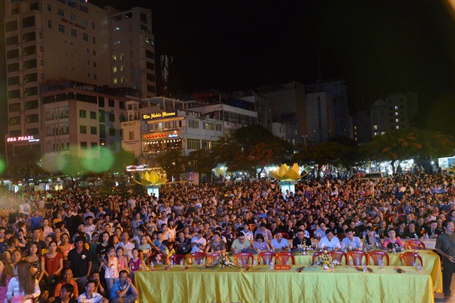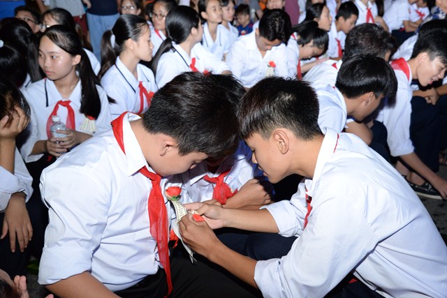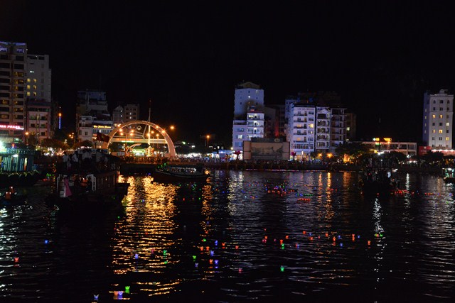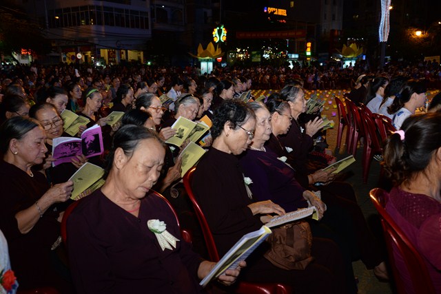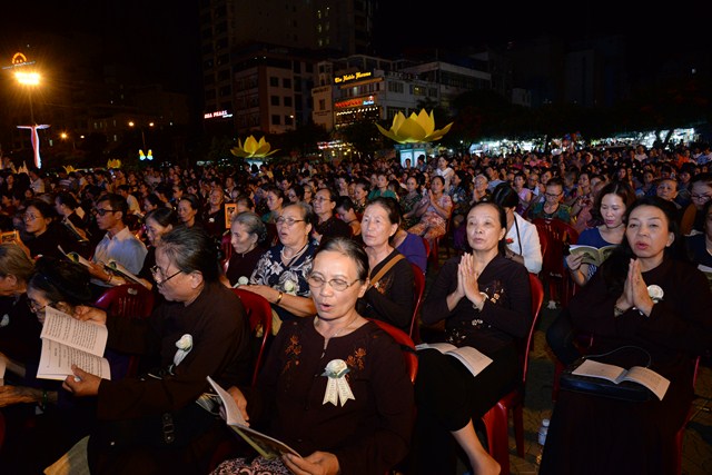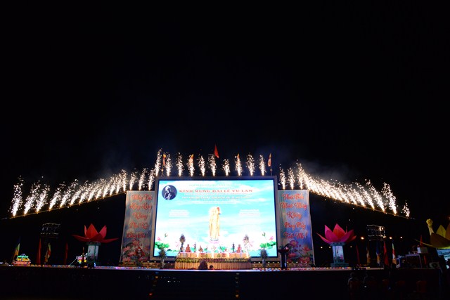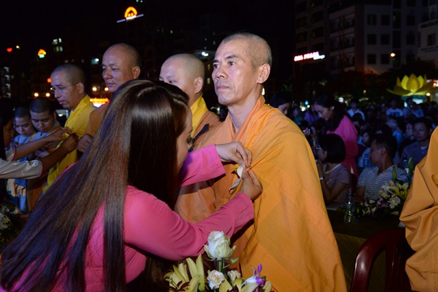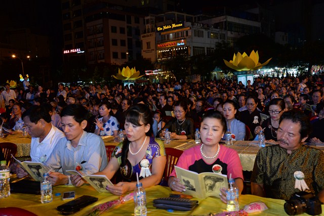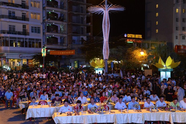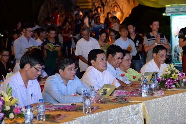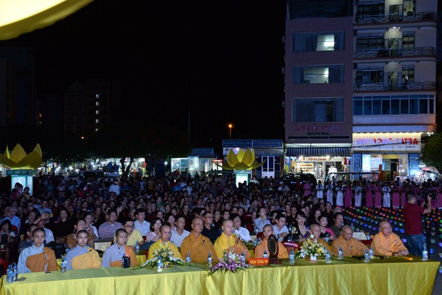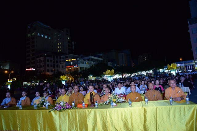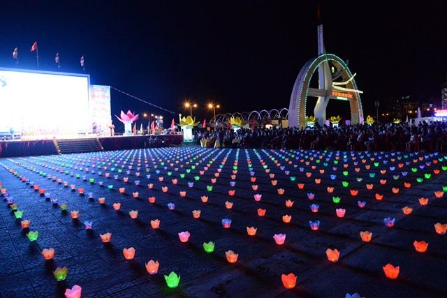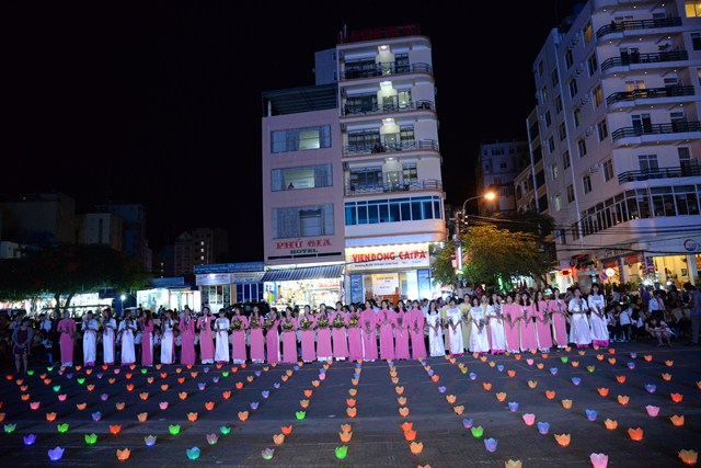 Thời khắc thiêng liêng nhất của buổi lễ đã tới khi toàn thể chư tôn đức tăng ni xin ngọn lửa của tình thương và sự hiểu biết từ bàn Phật rồi truyền sang cho các bạn thanh thiếu niên, quý quan khách, quý Phật tử, du khách thập phương gần xa. Hơn 10 ngàn ngọn hoa đăng đã dần được thắp sáng giữa biển đảo thân yêu, làm xua tan đi màn vô minh si ám để tri ân ông bà cha mẹ hiện tiền, ông bà cha mẹ đã quá vãng và tri ân các anh hùng liệt sỹ, đồng bào tử nạn đã hy sinh cho độc lập tự do của Đất nước. Hơn 10 ngàn ngọn nến lung linh, huyền ảo đó đã được chư tôn thiền đức tăng ni, quý Phật tử, quý quan khách và khách du lịch thả ra biển mang theo đó là tình yêu thương của con cái đối với ông bà cha mẹ và lời khấn nguyện cho ông bà cha mẹ hiện tiền được phúc thọ tăng long, ông bà cha mẹ đã quá vãng cũng như các anh hùng liệt sỹ, chiến sỹ trận vong, đồng bào tử nạn sớm được siêu sinh về miền Cực Lạc.