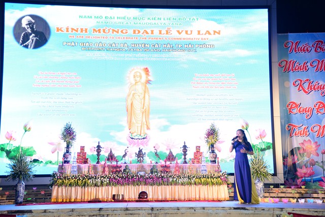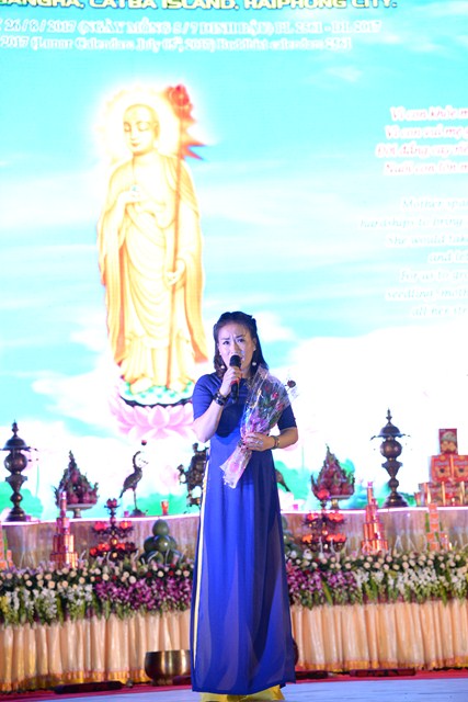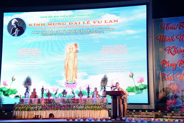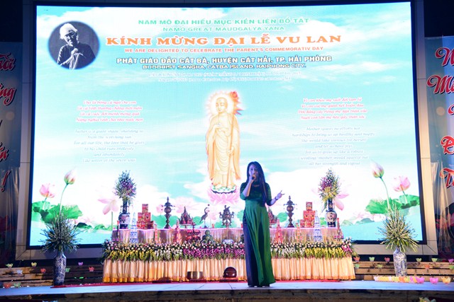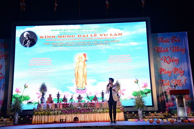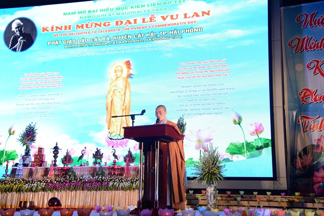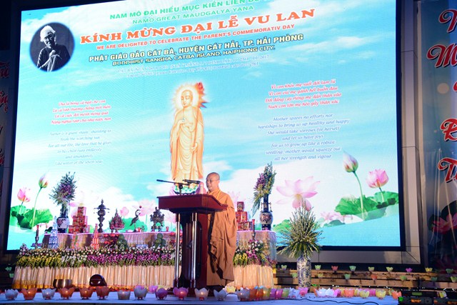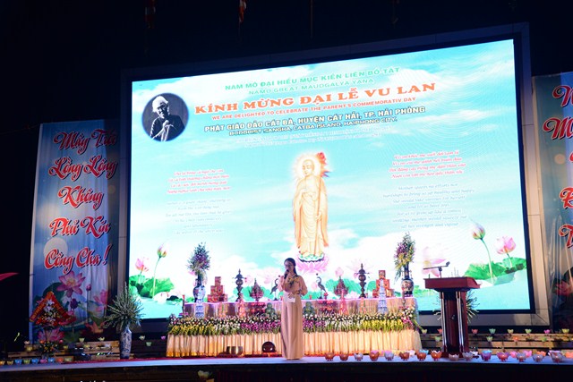 Thay mặt cho các em thanh thiếu niên đang học tập, sinh hoạt tại huyện Cát Hải, Phật tử Kiều Diễm đã lên tuyên đọc ý nghĩa Vu Lan: “ Vu Lan bồn là ngày lễ báo hiếu vô cùng cao đẹp của Phật giáo nói riêng và là ngày lễ hội báo hiếu nói chung của mọi người con hiếu trên thế gian này. Lễ Vu Lan mang một ý nghĩa thật thiêng liêng cao cả, giúp cho con cái nghĩ nhớ đến công ơn cha mẹ, khơi dậy trong lòng họ một tinh thần báo hiếu đáng quý, đáng trân trọng. Người con Phật nhận thức sâu sắc lời Phật, mùa Vu Lan về càng nỗ lực tinh tấn thực hành hạnh hiếu để báo đáp thâm ân của cha mẹ. Thờ kính cha mẹ đã trở thành một đạo lý sống của dân tộc Việt Nam, đồng thời cũng là đạo lý sống của hàng Phật tử khi khẳng định đạo Phật là đạo hiếu.”