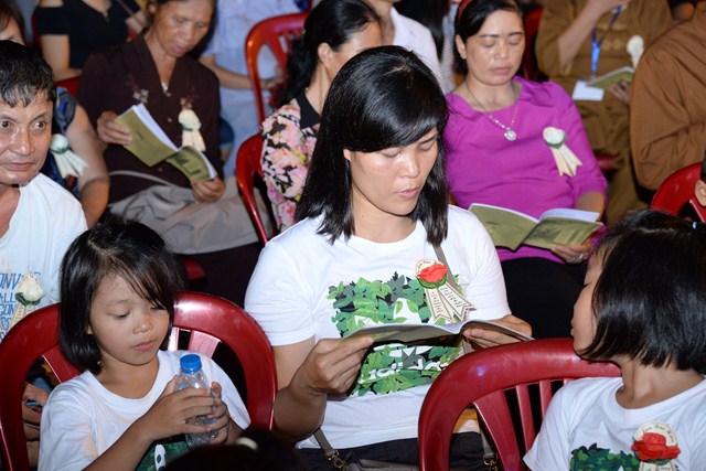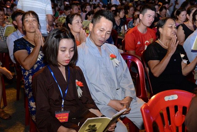 Tiếp đó, Chư tôn đức Tăng Ni, quý Phật tử và đông đảo du khách thập phương gần xa đã cử hành nghi lễ niêm hương bạch Phật và tụng kinh Vu Lan Báo Hiếu nhằm giúp cho các bạn trẻ cũng như các Phật tử và du khách hiểu được công ơn của cha mẹ từ khi mẹ mang thai đến khi chúng ta được trưởng thành, để từ đó có những suy nghĩ và hành động tích cực nhằm báo đáp thâm ân của hai đấng sinh thành.