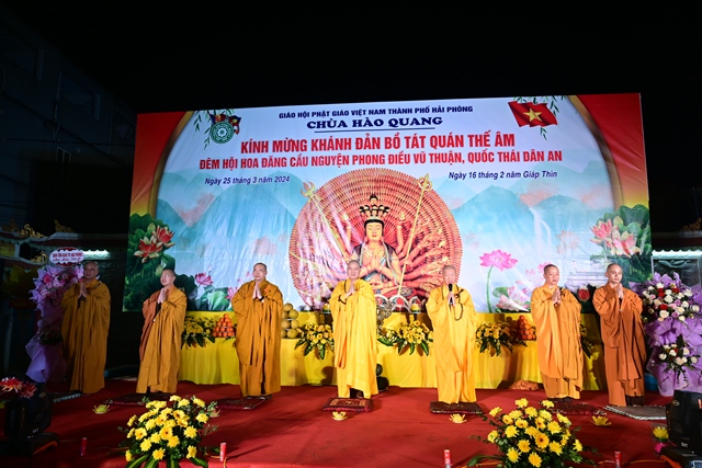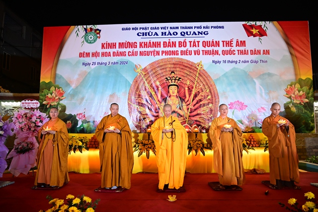 Tối qua 25/03/2024 ( nhằm ngày 16/02 năm Giáp Thìn), tại chùa Hào Quang ( Ngõ Hào Khê, phường Kênh Dương, quận Lê Chân, thành phố Hải Phòng) đã long trọng diễn ra Đêm hoa đăng hướng tới kỷ niệm ngày khánh đản Bồ Tát Quán Thế Âm 19/02 âm lịch.