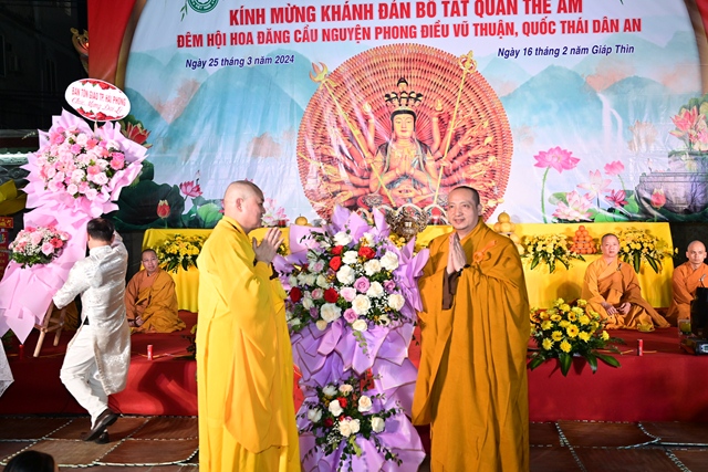 Phát biểu khai mạc đại lễ, Đại đức Thích Thanh Nghiêm – Trưởng BTC đã chia sẻ về lịch sử và công hạnh của Bồ Tát Quán Thế Âm. Ngài chính là một trong 4 vị Bồ Tát trong Phật giáo Đại thừa. Với hạnh nguyện từ bi cứu khổ, cứu nạn, Ngài sẵn sáng cứu vớt tất cả mọi chúng sinh nếu chúng sinh niệm danh hiệu của Ngài. Bồ tát Quán Thế Âm là đấng mẹ hiền trên tất cả mẹ hiền, trên tất cả thánh nhân được tôn xưng là mẹ hiền, Ngài luôn được người đời kính ngưỡng bởi hạnh nguyện từ bi, ban vui và cứu khổ không mệt mỏi, không giới hạn và luôn được đức Phật nhắc đến trong các kinh điển Đại Thừa.