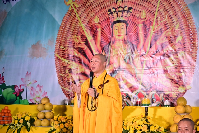 Đại đức Thích Thanh Nghiêm phát biểu khai mạc Đêm hoa đăng kính mừng khánh đản Bồ tát Quán Thế Âm