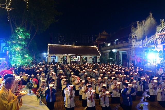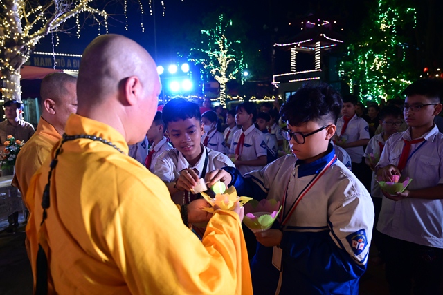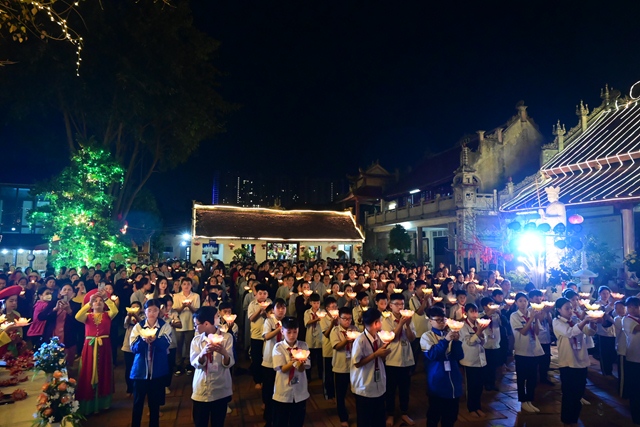 Đông đảo học sinh và Phật tử về tham dự Đêm hoa đăng