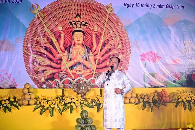 Phát biểu khai mạc đại lễ, Đại đức Thích Thanh Nghiêm – Trưởng BTC đã chia sẻ về lịch sử và công hạnh của Bồ Tát Quán Thế Âm. Ngài chính là một trong 4 vị Bồ Tát trong Phật giáo Đại thừa. Với hạnh nguyện từ bi cứu khổ, cứu nạn, Ngài sẵn sáng cứu vớt tất cả mọi chúng sinh nếu chúng sinh niệm danh hiệu của Ngài. Bồ tát Quán Thế Âm là đấng mẹ hiền trên tất cả mẹ hiền, trên tất cả thánh nhân được tôn xưng là mẹ hiền, Ngài luôn được người đời kính ngưỡng bởi hạnh nguyện từ bi, ban vui và cứu khổ không mệt mỏi, không giới hạn và luôn được đức Phật nhắc đến trong các kinh điển Đại Thừa.