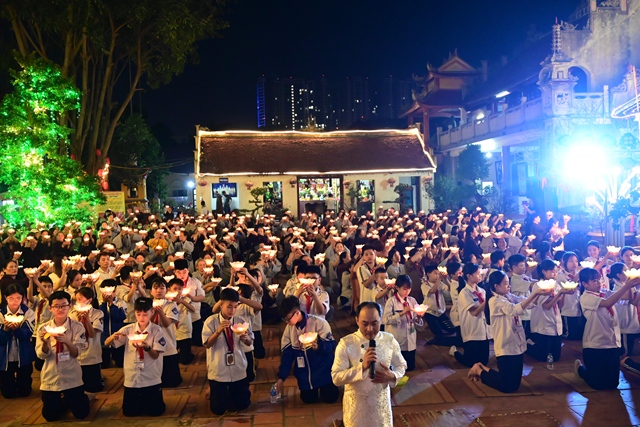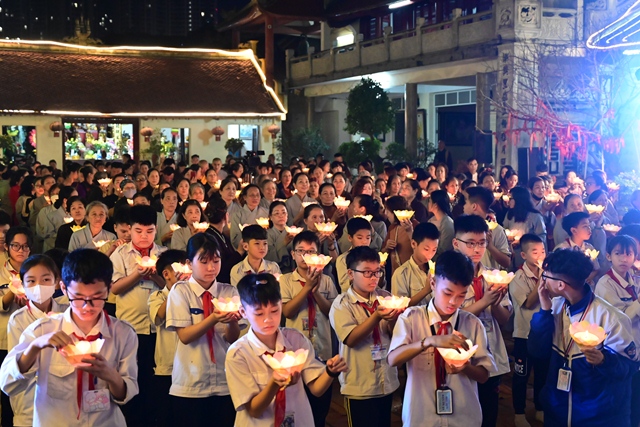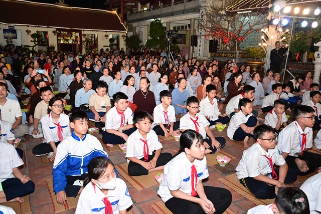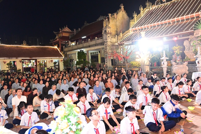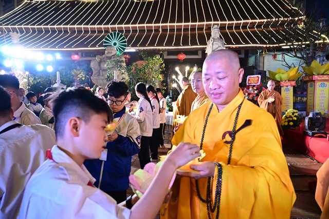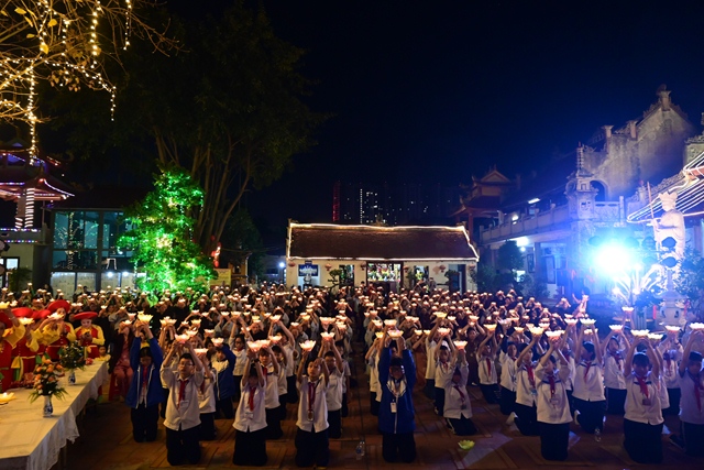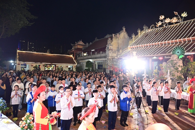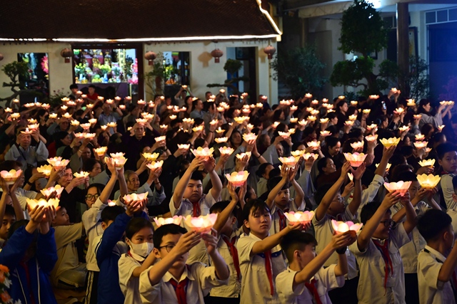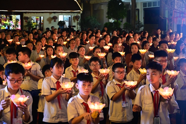 Đông đảo học sinh và Phật tử về tham dự Đêm hoa đăng