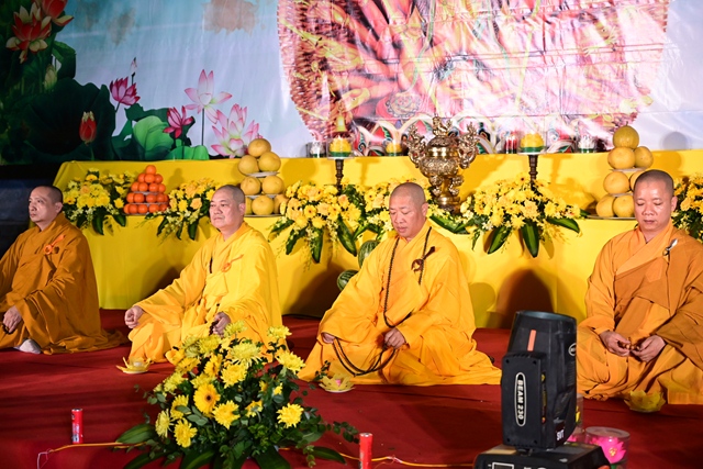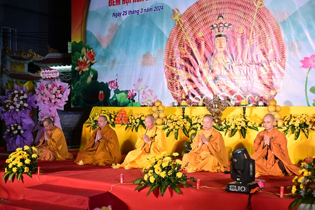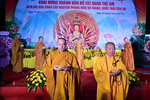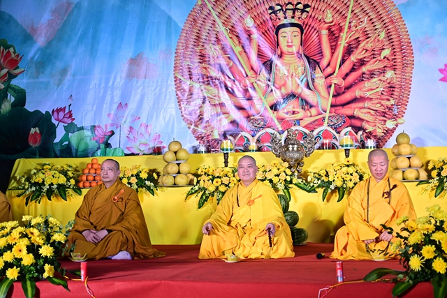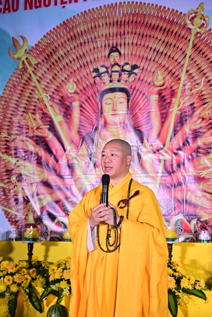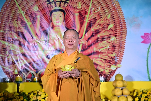 Dịp này, Thượng tọa Thích Thiện Thuận – Ủy viên thường trực ban Hoằng Pháp TƯ GHPGVN đã có một thời pháp thoại ngắn chia sẻ về hạnh nguyện Từ Bi – Cứu Khổ của Bồ Tát Quán Thế Âm, để từ đó áp dụng lời Phật dạy vào trong cuộc sống hàng ngày. Người Phật tử phải luôn lấy tâm từ bi, hạnh hỷ xả làm nền tảng cho sự phát triển hạnh lành, tâm “ Từ Bi” được coi là tâm Phật. Tâm “ Từ” là khả năng hiến tặng niềm vui cho tha nhân, cho người khác. Tâm “ Bi” là khả năng làm vơi đi nỗi khổ, niềm đau đang có mặt ở giây phút hiện tại. Nếu trong cuộc sống hàng ngày ai cũng có tâm Từ Bi, thắp sáng lòng Từ bi, hạnh Hỷ xả thì trong mỗi gia đình, mỗi cơ quan, mỗi trường học, …hay toàn xã hội sẽ luôn bình an và hạnh phúc.