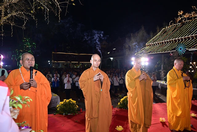 Thời khắc linh thiêng nhất của buổi lễ đã đến khi chư tôn đức cử hành nghi lễ niêm hương, bạch Phật cầu nguyện thế giới hòa bình, chúng sinh an lạc. Tiếp đó, Thượng tọa Thích Thiện Thuận đã đón nhận ánh sáng từ bàn Phật rồi truyền sang cho chư tôn đức Tăng và toàn thể đại chúng, ánh sáng dần lan tỏa khắp khuôn viên chùa Hào Quang, những ngọn nến lung linh huyền ảo, nến truyền nến, tâm truyền tâm, càng làm cho buổi lễ trở nên linh thiêng, trang nghiêm và thanh tịnh, kính dâng lên Bồ Tát Quán Thế Âm nhân kỷ niệm ngày khánh đản.