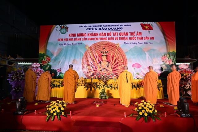 Tối qua 25/03/2024 ( nhằm ngày 16/02 năm Giáp Thìn), tại chùa Hào Quang ( Ngõ Hào Khê, phường Kênh Dương, quận Lê Chân, thành phố Hải Phòng) đã long trọng diễn ra Đêm hoa đăng hướng tới kỷ niệm ngày khánh đản Bồ Tát Quán Thế Âm 19/02 âm lịch.