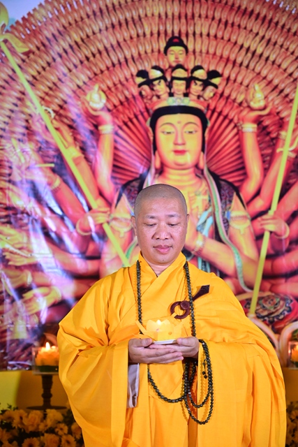 Đại đức Thích Thanh Nghiêm phát biểu khai mạc Đêm hoa đăng kính mừng khánh đản Bồ tát Quán Thế Âm