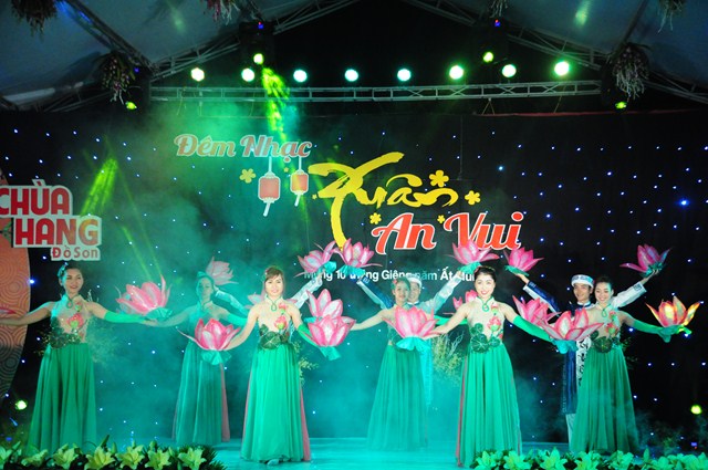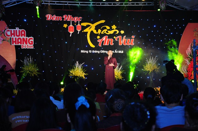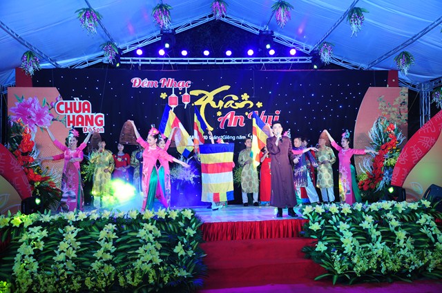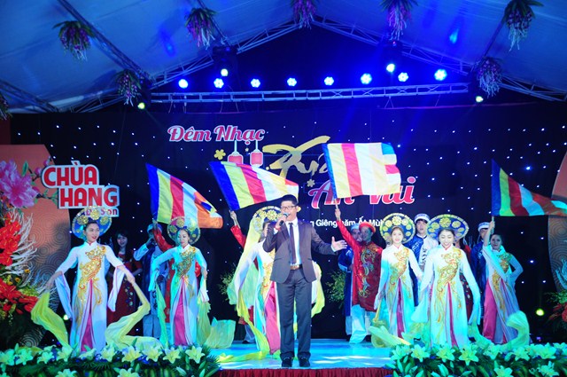 Đúng 19h30 phút đêm nhạc chính thức được diễn ra trong không khí hùng tráng, linh thiêng, ấn tượng và đặc sắc. Đặc biệt trong đêm nhạc có một ca khúc rất ý nghĩa viết về chùa Hang xưa và nay đã được nhạc sỹ Quý Luân sáng tác do ca sỹ Quang Hà trình bày với tựa đề: “ Chùa Hang Linh Thiêng”. Ca khúc này đã được Chư tôn đức Tăng Ni, quý Phật tử đón nhận rất nồng nhiệt trong tiếng vỗ tay tán thưởng làm cho sân khấu nóng lên với ca từ trong sáng, ngọt ngào, sâu lắng và linh thiêng.