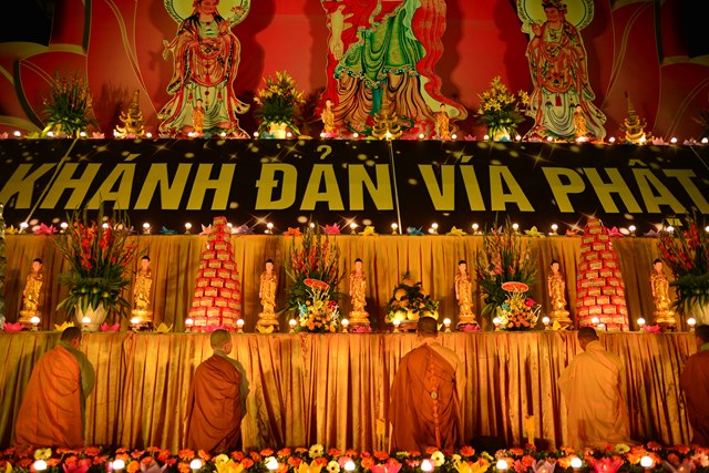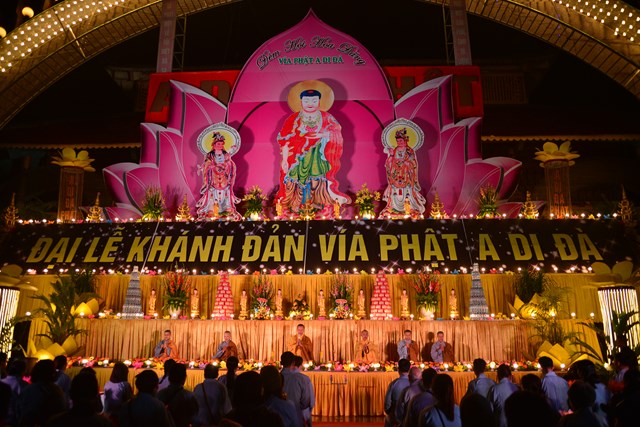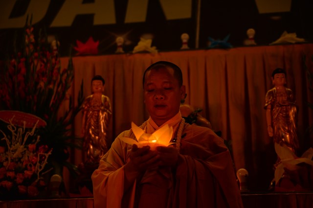 Điều đặc biệt hơn nữa là khi Đại đức Thích Giác Hảo – Trưởng Ban tổ chức xưng tán 48 đại nguyện của Đức Phật A Di Đà, cả đại chúng lắng đọng tâm tư lắng nghe từng lời chỉ dạy, lời phát nguyện của Ngài và lấy đó làm động lực, làm kim chỉ nam cho quá trình tu học của mình. Sau mỗi lời phát nguyện, toàn thể đại chúng lại đồng thanh niệm danh hiệu của Đức Phât A Di Đà trong một không gian hết sức linh thiêng, huyền ảo. Cùng với đó là tấm lòng chí thiết, chí thành của các Phật tử dâng lên đức từ phụ A Di Đà nhân kỷ niệm ngày đản sinh của Ngài. Cầm ngọn nến trên tay, ánh sáng lan tỏa khắp muôn nơi, chắc hẳn mỗi người con Phật, mỗi hành giả đang tu học theo pháp môn Tịnh Độ đều nhất tâm hướng về thế giới Tây Phương Cực Lạc của Ngài, nơi mà có Đức Phật A Di Đà đang thuyết pháp, dâng trọn tấm lòng thành kính cúng dàng tâm thanh tịnh lên đức từ phụ A Di Đà nhân ngày khánh đản. Đồng thời, nguyện đem câu Phật Hiệu đi vào cuộc sống, xóa bỏ mọi hận thù, tha thứ yêu thương, xóa bỏ hết những oan trái đang tràn ngập, ngự trị trong tâm trí tới lời nói hay hành động.