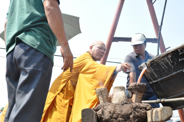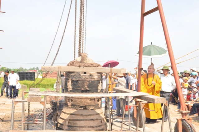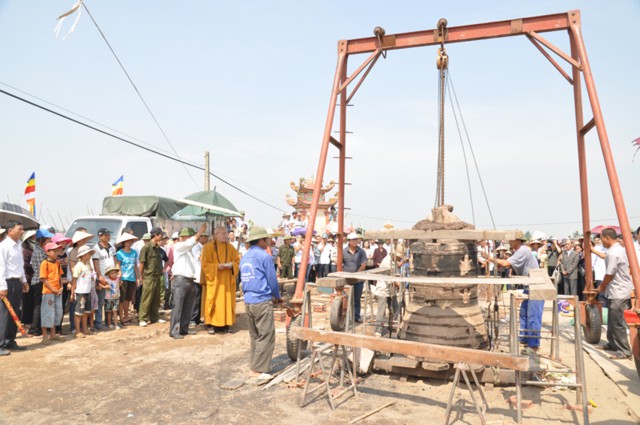 Ngay sau lễ An vị long cốt, Chư tôn đức đã gia trì đúc một quả chuông nặng trên 3 tạ.
