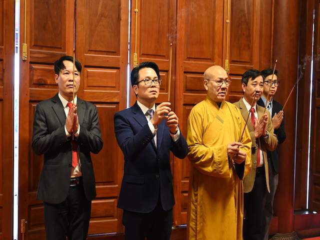 Phái đoàn dâng hương tại chính điện chùa Nam Hải