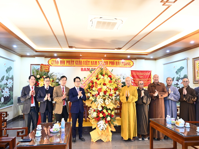 Ban Dân vận Thành ủy tặng hoa chúc tết Ban trị sự GHPGVN thành phố Hải Phòng