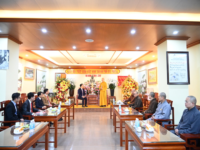 Tiếp đoàn có Hòa thượng Thích Quảng Tùng – Phó Chủ tịch HĐTS GHPGVN, Trưởng Ban trị sự GHPGVN thành phố Hải Phòng; Thượng tọa Thích Tục Minh – Ủy viên dự khuyết HĐTS GHPGVN, Chánh văn phòng, kiêm phó Chánh thư ký Ban trị sự GHPGVN thành phố Hải Phòng, cùng Chư tôn đức văn phòng Ban trị sự GHPGVN thành phố.