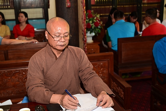 Dịp này, Thượng tọa Thích Tục Khang đã báo cáo công tác chuẩn bị cho đại lễ, mọi công tác chuẩn bị vẫn đang được tiếp tục hoàn thiện như: sân khấu, âm thanh, ánh sáng, nơi thả hoa đăng… để kịp tổng duyệt chương trình vào hồi 19 giờ 30 phút ngày 07/08/2024 ( nhằm ngày 4/06 năm Giáp Thìn).