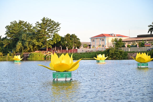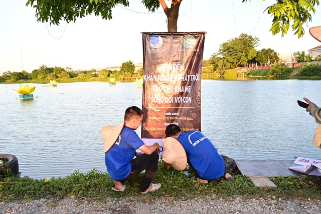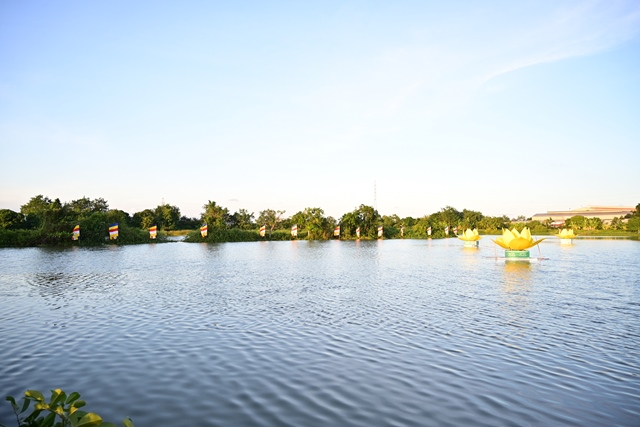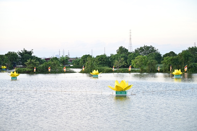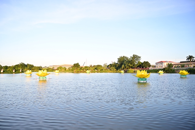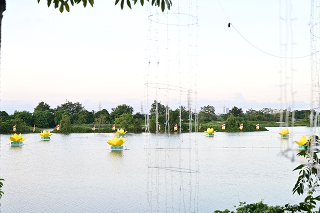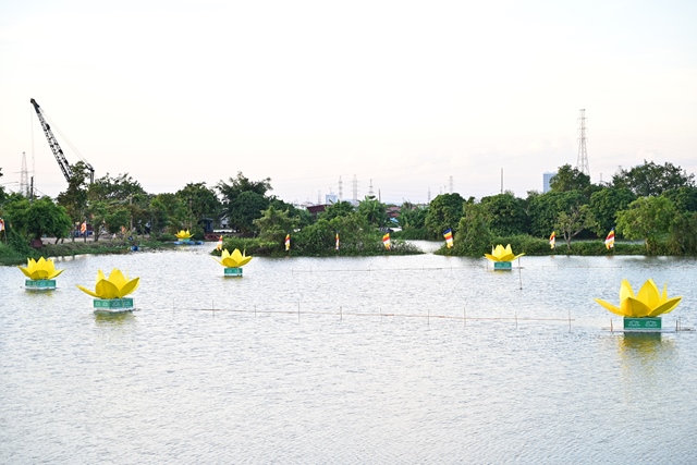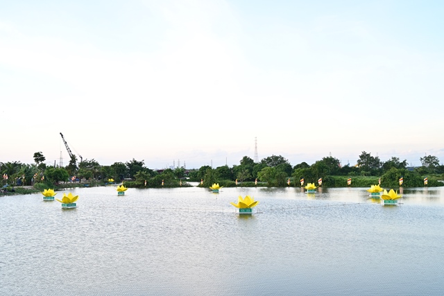 9 đóa sen đại được thả xuống hồ nơi thả hoa đăng