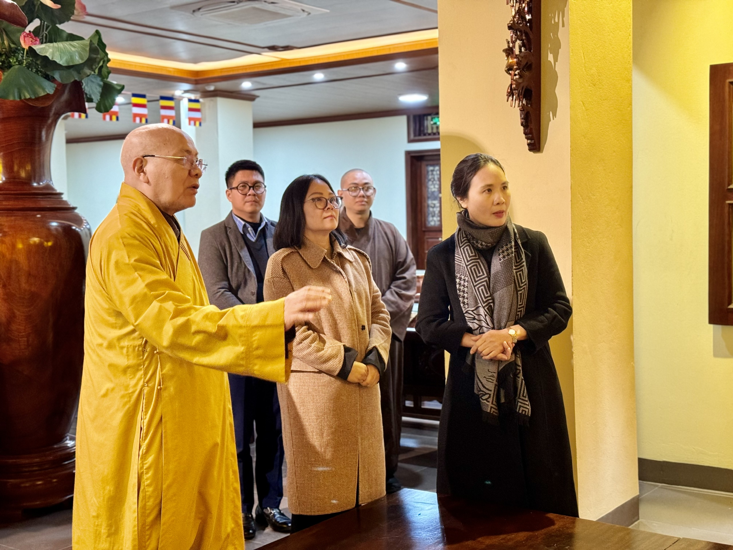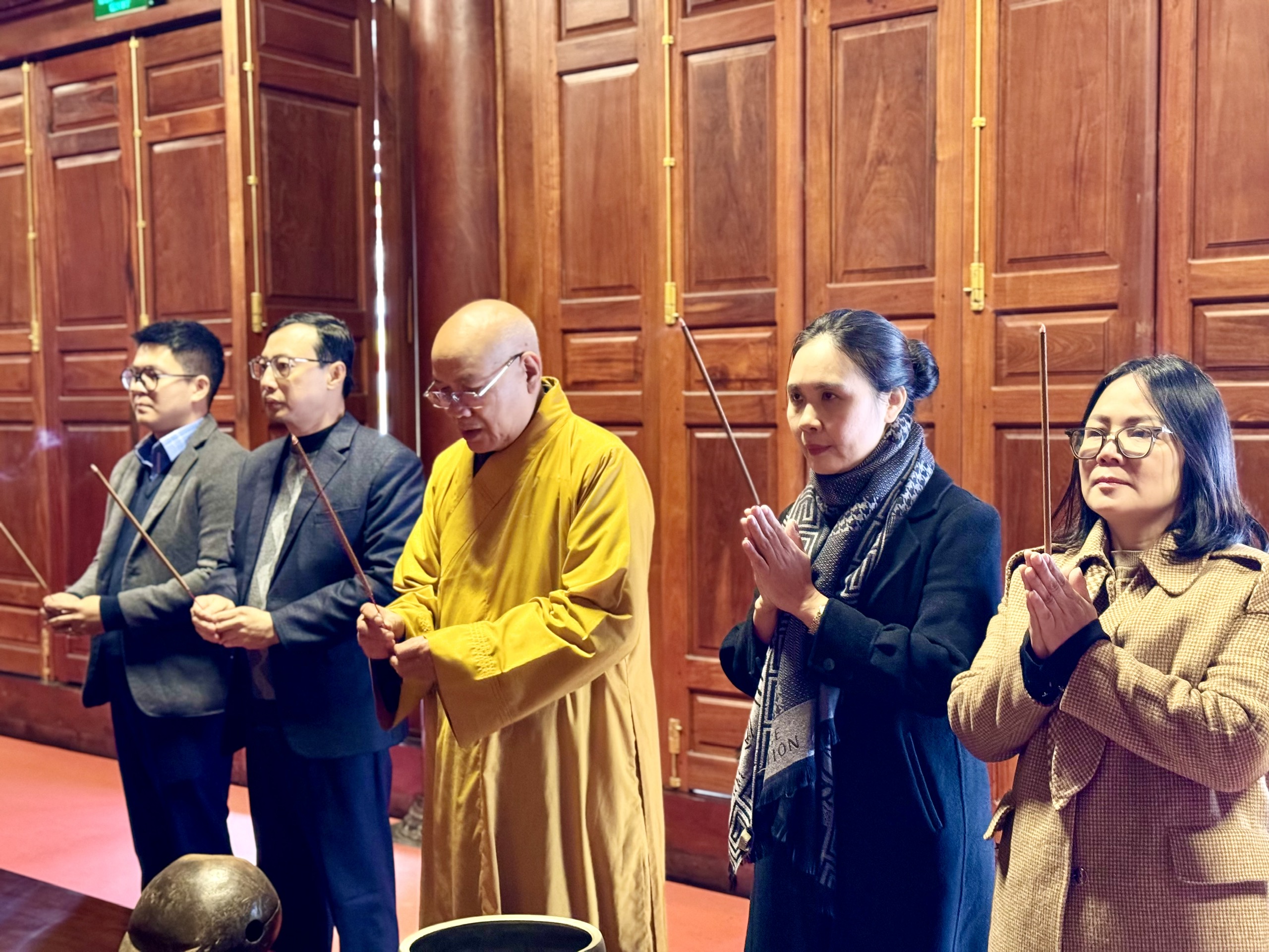 Sau khi chúc Tết phái đoán đã dâng hương tại Chính Điện và thăm quan các hạng mục như Đại Hội trường, Tổ Đường, Tăng Xá, Phòng họp của Ban Trị sự,…