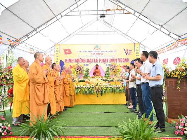 Đại đức Thích Thanh Trường – Trưởng Ban trị sự GHPGVN quận Hải An đã lên tuyên đọc Diễn văn Phật đản PL. 2567 – DL. 2023
