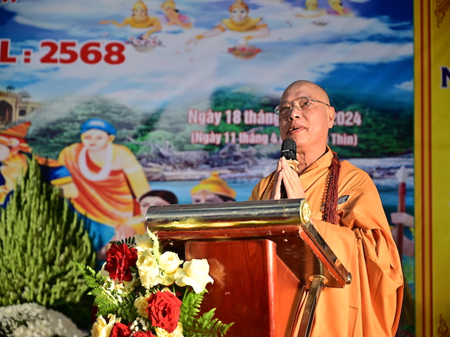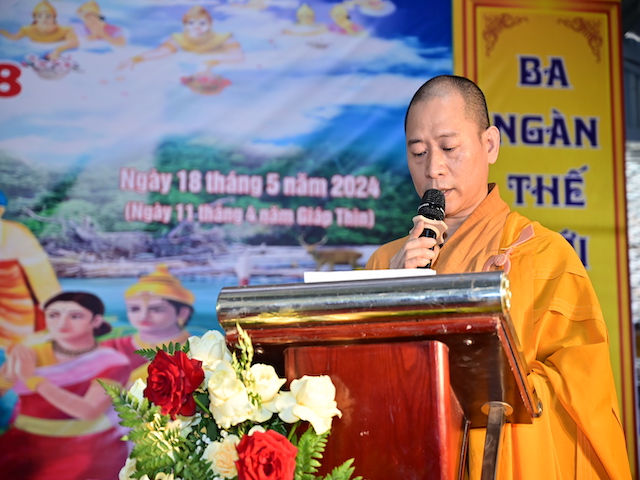 Đại đức Thích Thanh Trường – Trưởng BTS GHPGVN quận Hải An đã lên tuyên đọc Diễn văn Phật đản PL. 2568 – DL. 2024