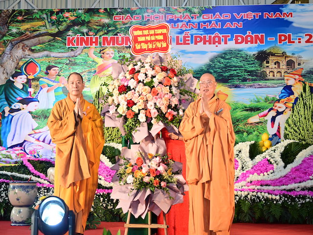 Trong không khí hoan hỷ đón mừng sự kiện Đức Phật đản sinh, Ban trị sự GHPGVN quận Hải An đã đón nhận những lẵng hoa tươi thắm chúc mừng của thường trực Ban trị sự GHPGVN thành phố Hải Phòng, đại diện Ban trị sự các quận huyện trong thành phố; Ban Tôn giáo Sở Nội vụ, Phòng An ninh Nội địa Công an thành phố; Đại diện các cấp chính quyền quận Hải An, phường Đằng Hải, các sở ban ngành và Phật tử đại diện các chùa trên địa bàn quận.