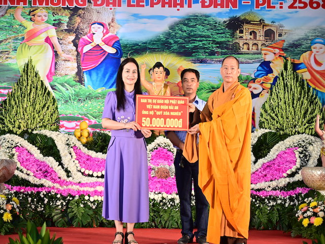 Trên tinh thần Từ bi – Cứu khổ – Ban vui của đạo Phật, dịp này, Ban trị sự GHPGVN quận Hải An đã trao 50 triệu đồng cho UB MTTQVN quận, góp phần cùng chính quyền địa phương trong công tác “ xóa đói giảm nghèo” trên địa bàn quận. Đây chính là hoạt động thiết thực nhất cúng dàng lên đức Bản sư Thích Ca Mâu Ni Phật nhân kỷ niệm ngày đản sinh của Ngài.