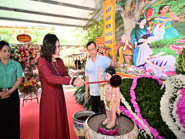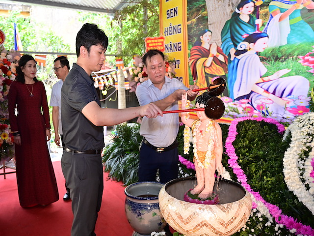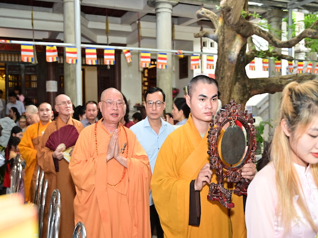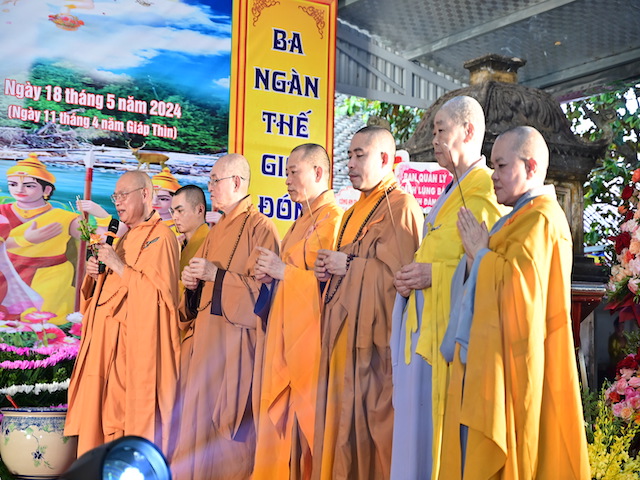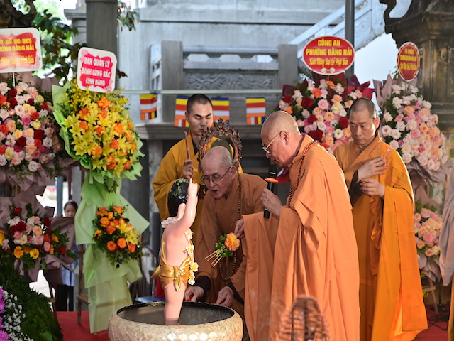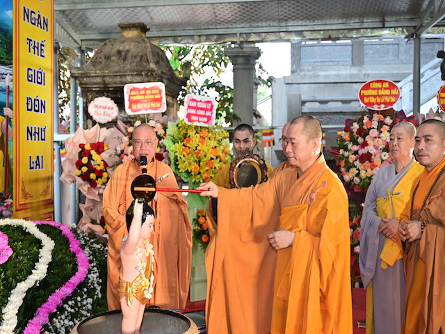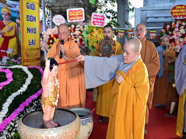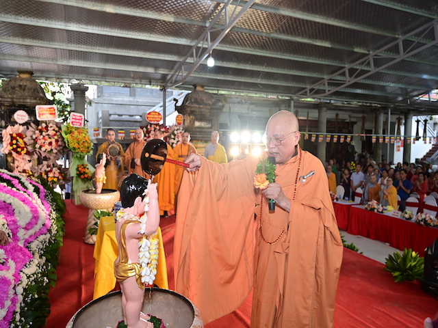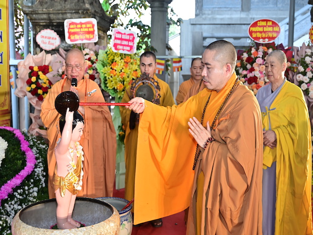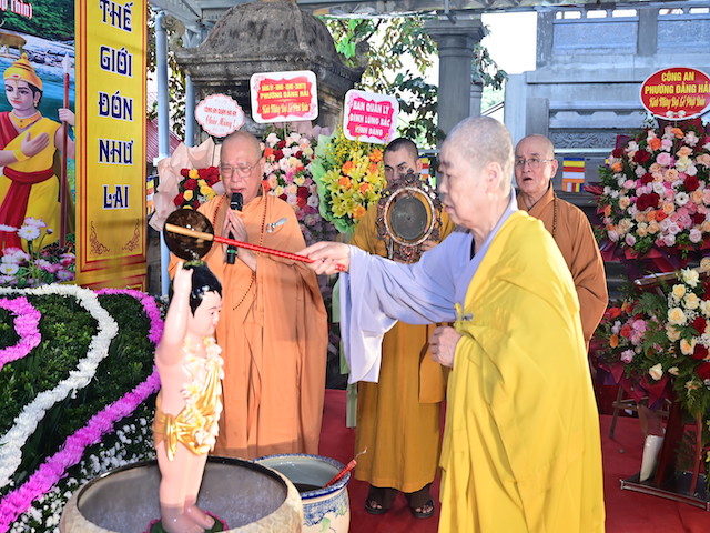 Trước khi kết thúc buổi lễ, chư tôn đức Tăng Ni và toàn thể đạo tràng đã trang nghiêm, thành kính cử hành nghi lễ dâng hương, bạch Phật, cầu nguyện thế giới hòa bình, chúng sinh an lạc, dâng kệ tắm Phật và cử hành nghi lễ Mộc dục theo nghi thức truyền thống của Phật giáo.