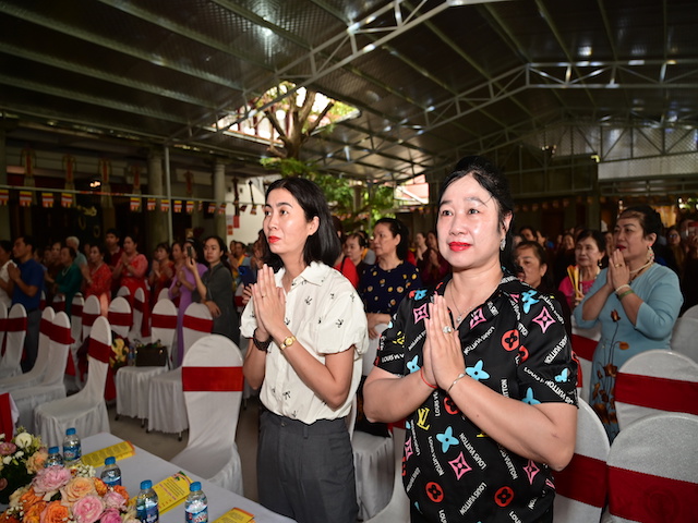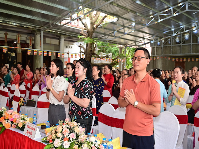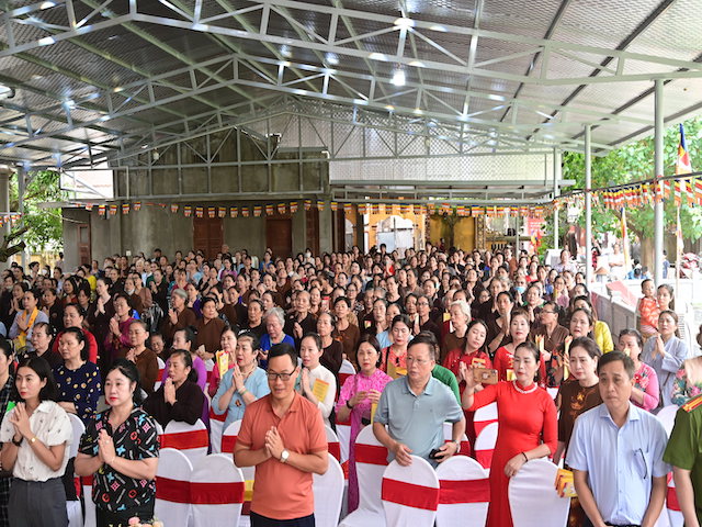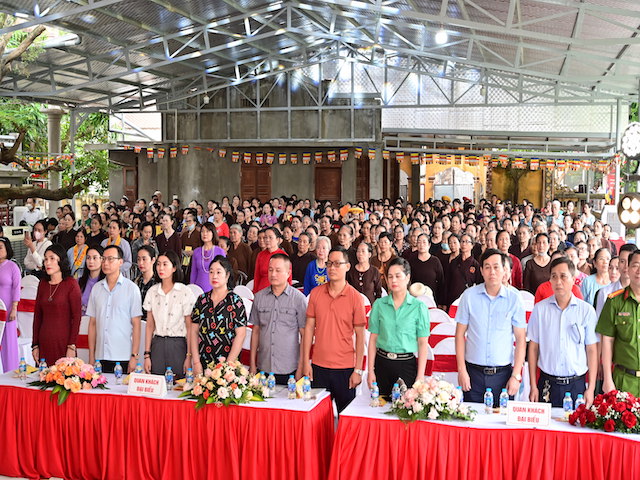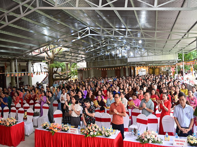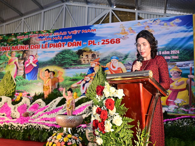 Phát biểu tại buổi lễ, bà: Trần Thị Kim Oanh – Phó Chủ tịch UBND quận đánh giá cao vai trò của Phật giáo đối với sự phát triển chung của toàn xã hội. Đặc biệt, trong những năm vừa qua, Tăng Ni, Phật tử quận Hải An đã có nhiều đóng góp trong việc chung tay xây dựng quê hương Hải An, tích cực tham gia các phong trào thi đua yêu nước, trọng tâm là cuộc vận động “ Toàn dân đoàn hết xây dựng đời sống văn hóa ở khu dân cư”, nay là cuộc vận động “ Toàn dân đoàn kết xây dựng nông thôn mới, đô thị văn minh..”; các Phật tử đã đoàn kết, giúp nhau phát triển kinh tế, thi đua sản xuất kinh doanh giỏi, thực hiện giảm nghèo bền vững, làm giàu hợp pháp, làm tốt công tác đền ơn đáp nghĩa, nhân đạo, từ thiện, an sinh xã hội, đóng góp tích cực trong việc phát huy khối đại đoàn kết toàn dân tộc. Bà mong rằng Tăng ni, Phật tử trong quận luôn đồng hành cùng dân tộc, đoàn kết, gắn bó trong mái nhà chung. Tiếp tục phát huy những thành tích, kết quả tốt đẹp đã đạt được, tăng cường hơn nữa sự đoàn kết, hòa hợp, tiếp tục thực hiện mục tiêu “ Hoằng dương Phật Pháp, lợi lạc quần sinh”, vận động phật tử và nhân dân thực hiện tốt chủ trương, đường lối chính sách của Đảng, chính sách pháp luật của Nhà nước, thực hiện có hiệu quả hơn nữa phong trào thi đua yêu nước, các cuộc vận động, chung sức xây dựng quận Hải An trở thành đô thị văn minh, xanh – sạch – đẹp và là khu vực tăng trưởng kinh tế trọng yếu của thành phố và toàn miền Bắc…