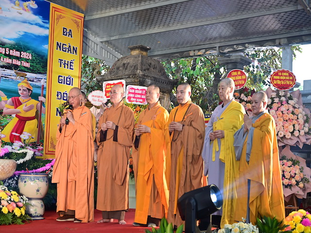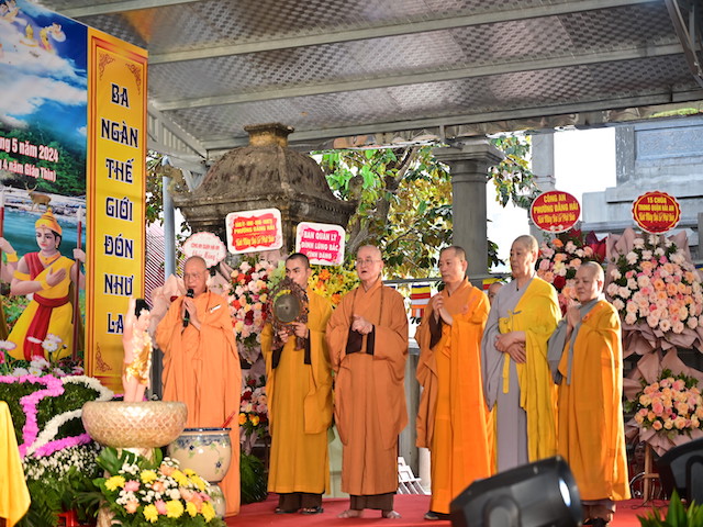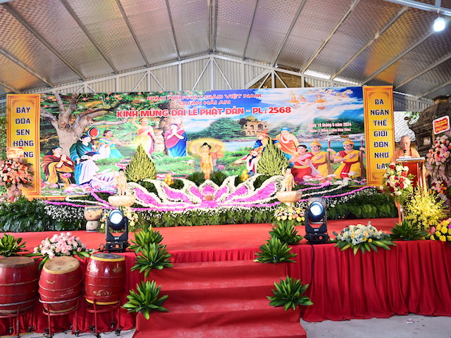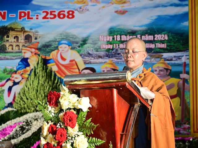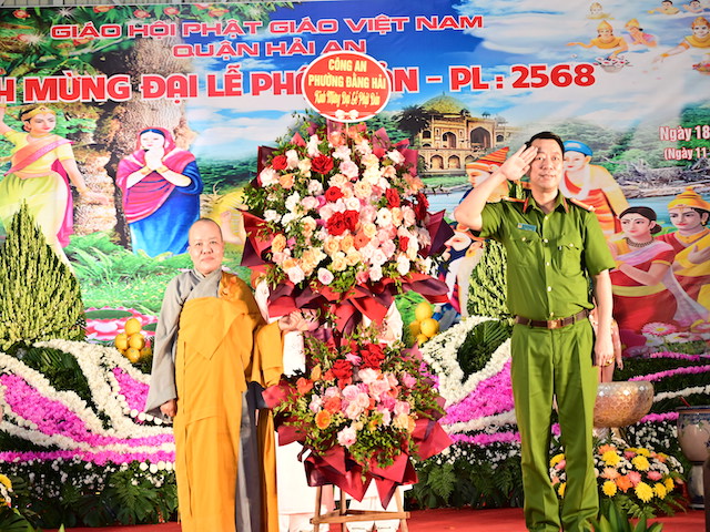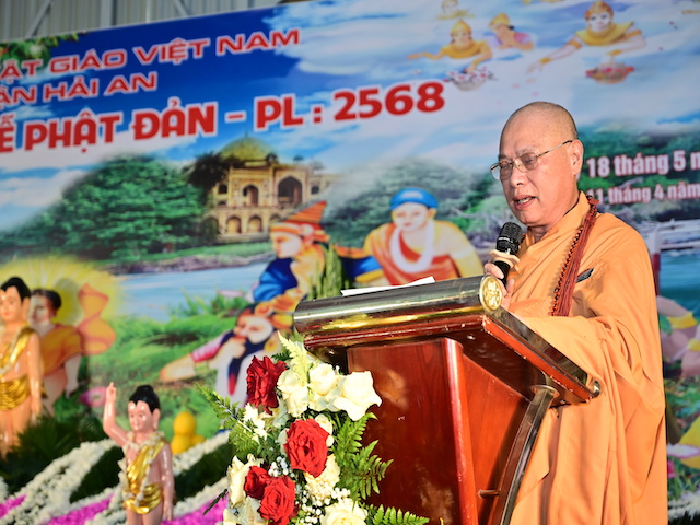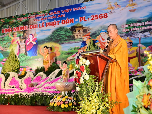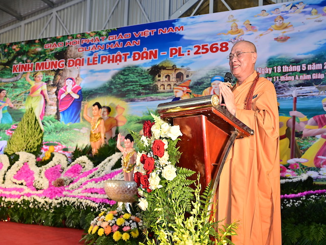 Đại đức Thích Thanh Trường – Trưởng BTS GHPGVN quận Hải An đã lên tuyên đọc Diễn văn Phật đản PL. 2568 – DL. 2024