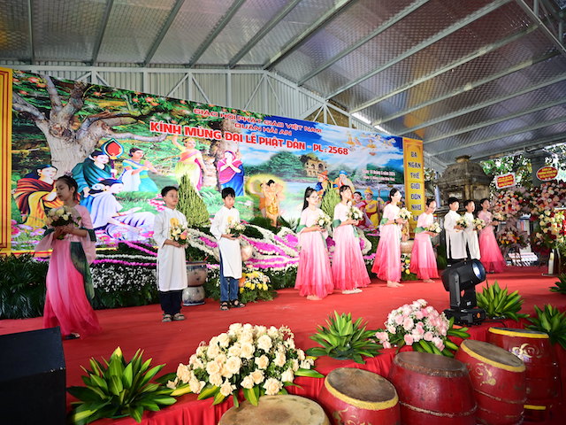 Trước khi chính thức diễn ra đại lễ, Phật tử các chùa và các cháu thiếu niên, nhi đồng trong quận đã thành kính dâng lời ca tiếng hát, những tiết mục văn nghệ đặc sắc, ấn tượng, chọn lọc cúng dàng lên Đức Từ phụ Bản Sư Thích Ca Mâu Ni Phật nhân kỷ niệm 2.648 năm ngày đản sinh của Ngài.