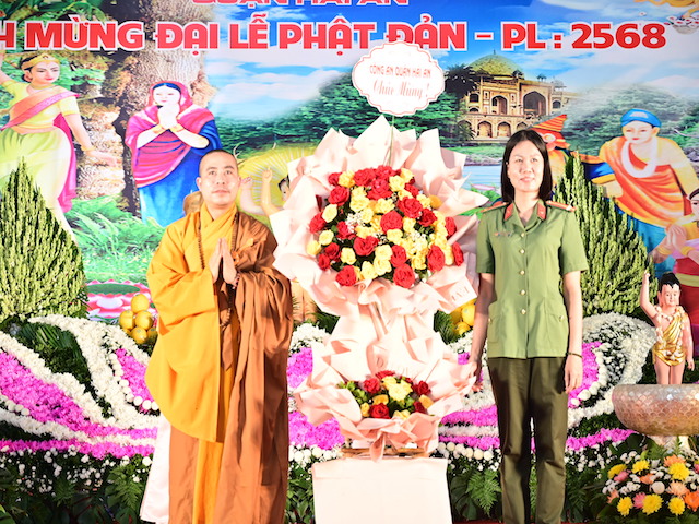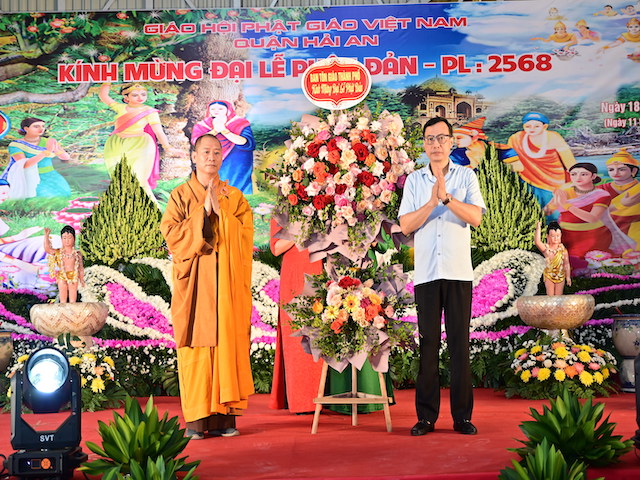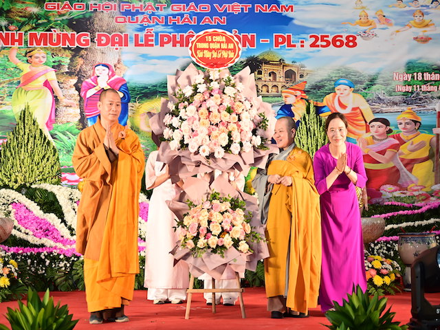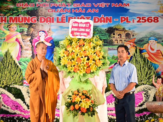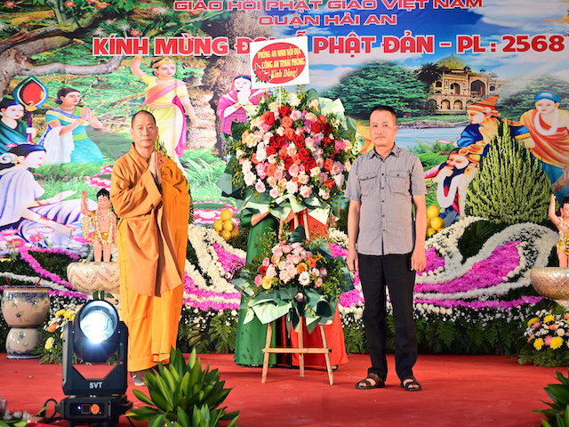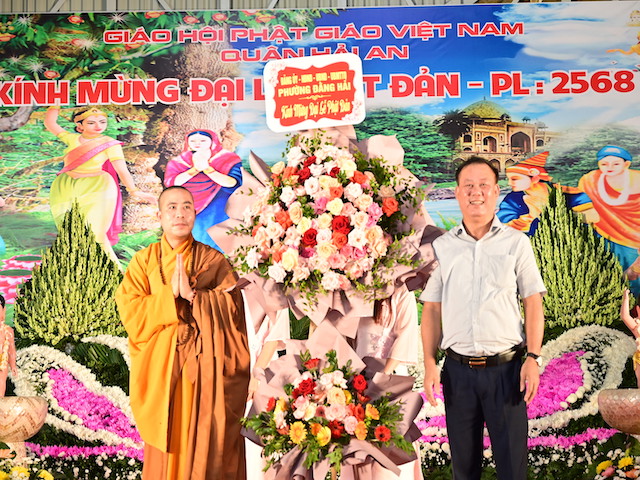 Trong không khí hoan hỷ đón mừng sự kiện Đức Phật đản sinh, Ban trị sự GHPGVN quận Hải An đã đón nhận những lẵng hoa tươi thắm chúc mừng của thường trực Ban trị sự GHPGVN thành phố Hải Phòng, đại diện Ban trị sự các quận huyện trong thành phố; Ban Tôn giáo Sở Nội vụ, Phòng An ninh Nội địa Công an thành phố; Đại diện các cấp chính quyền quận Hải An, phường Đằng Hải, các sở ban ngành và Phật tử đại diện các chùa trên địa bàn quận.