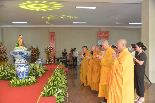 Trước khi kết thúc buổi lễ, Chư tôn đức Tăng Ni đã cùng các cấp chính quyền và đồng bào Phật tử trang nghiêm, thành kính cử hành nghi lễ dâng hương, bạch Phật và lễ tắm Phật truyền thống trong Phật giáo, cầu nguyện hòa bình cho nhân loại, nhân dân ấm no, hạnh phúc.