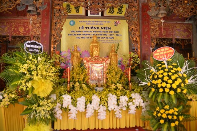 Thực hiện thông bạch số 259/TBĐB- HĐTS ngày 21/10/2021 của Hội đồng trị sự GHPGVN về lễ tang Đại lão hoà thượng Thích Phổ Tuệ – Đức đệ tam Pháp Chủ Hội đồng chứng minh GHPGVN về việc tổ chức tang lễ Đại lão Hoà thượng Thích Phổ Tuệ – Pháp Chủ GHPGVN. Đúng 9h sang ngày 24/09/2021 ( nhằm ngày 19/09 năm Tân Sửu), Ban trị sự GHPGVN thành phố Hải Phòng đã trang nghiêm thành kính tổ chức Đại lễ tưởng niệm cố Đại lão Hoà thượng Thích Phổ Tuệ tân viên tịch.