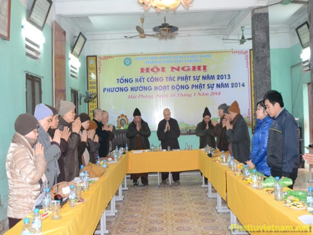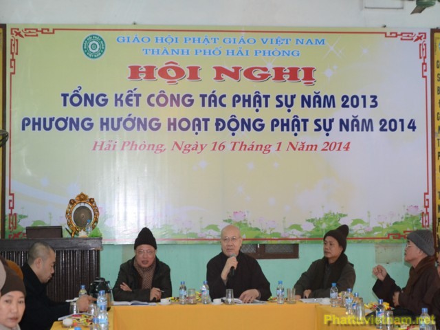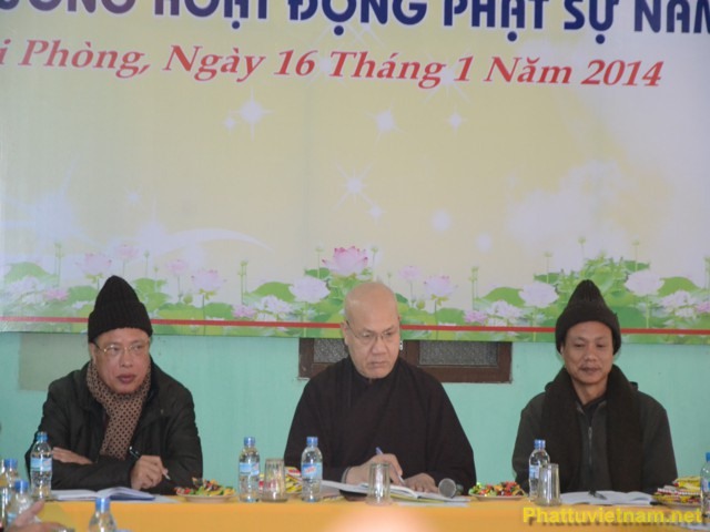 Sau nghi thức niệm Phật cầu gia bị và tuyên đọc diễn văn khai mạc, Đại Đức Thích Bản Điền, ủy viên BTS GHPGVN Tp. Hải Phòng thay mặt cho Ban trị sự GHPGVN Tp. Hải Phòng lên báo cáo tổng kết công tác Phật sự năm 2013 và phương hướng hoạt động Phật sự năm 2014.