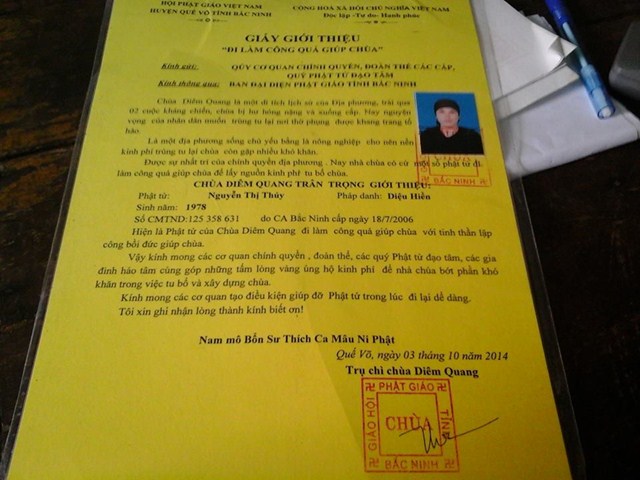 Khi lực lượng công an của thị trấn An Dương tiếp cận hiện trường thì một đối tượng đã nhanh chân tẩu thoát và chỉ bắt được một đối tượng nữ. Qua đấu tranh và khai thác thông tin đối tượng còn lại tên là: Nguyễn Thị Thúy. Theo như lời khai của người phụ nữ này thì cô ta hiện đang là Phật tử của chùa Diêm Quang, huyện Quế Võ, tỉnh Bắc Ninh. Dựa trên thông tin của mà tượng bị bắt đã khai báo, lực lượng công an thị trấn An Dương đã gọi điện thoại trực tiếp cho Đại đức Thích Giới Thanh – Trưởng Ban trị sự GHPGVN huyện Quế Võ, tỉnh Bắc Ninh thì được biết hiện không có chùa nào trên địa bàn huyện cho Phật tử đi khuyên giáo để xây chùa và đi viết sớ cầu an như đối tượng đã khai nhận cả.