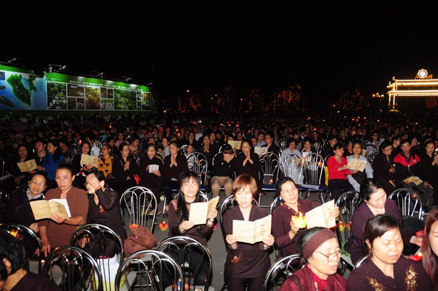 Trước khi kết thúc buổi lễ, Chư tôn đức Tăng Ni, quý quan khách chính quyền đã làm lễ dâng hương, bạch Phật, tụng kinh, thắp đèn hoa đăng cầu nguyện thế giới hòa bình, chúng sinh an lạc trong không khí linh thiêng, thành kính và xen lẫn vào đó là sự tiếc nuối vì ngày mai đây Phật tử, nhân dân của thành phố hoa phượng đỏ sẽ không còn được nhìn thấy tôn tượng của bậc đại giác ngộ đức Bản Sư Thích Ca Mâu Ni Phật tại chùa Hồng Phúc nữa.