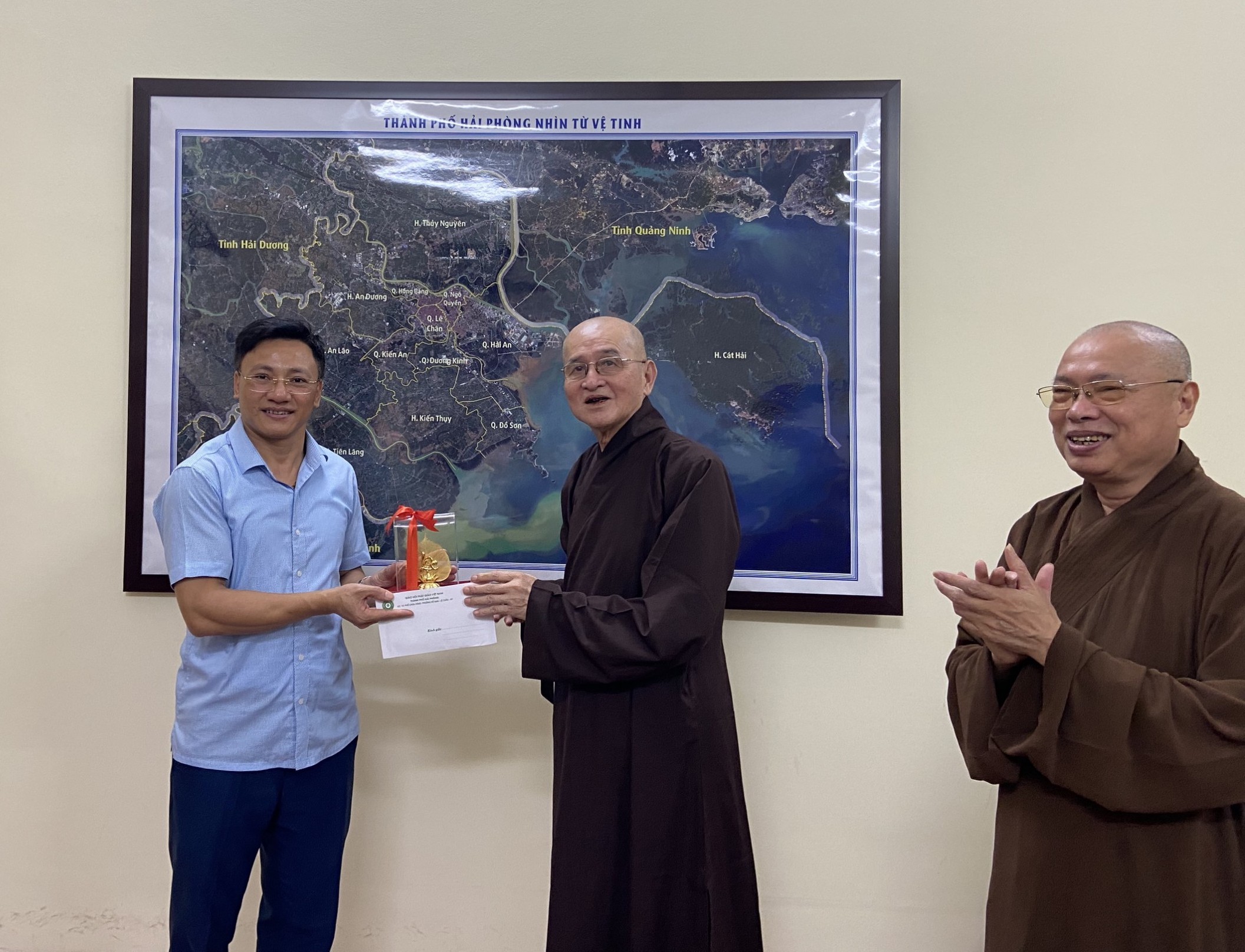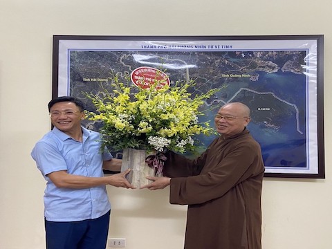 Sáng ngày 02/08/2022 (nhằm ngày 05/07 năm Nhâm Dần), HT. Thích Thanh Giác – Phó trưởng Ban thường trực BTS GHPGVN TP.Hải Phòng, cùng chư tôn đức Ban trị sự GHPGVN thành phố Hải Phòng đã đến thăm, chúc mừng lãnh đạo Ban Tôn giáo thành phố nhân kỷ niệm 67 năm ngày truyền thống Ngành quản lý Nhà nước về Tôn giáo (2/8/1955 – 2/8/2022).