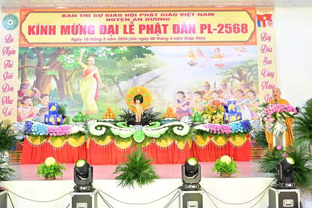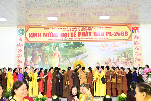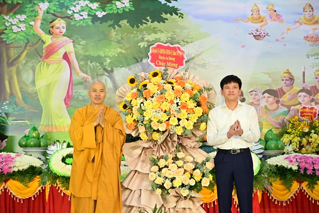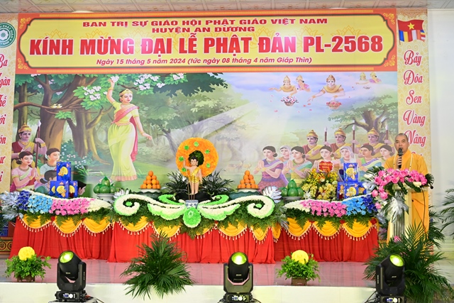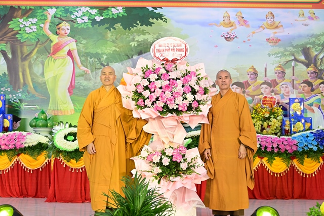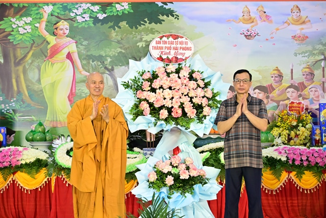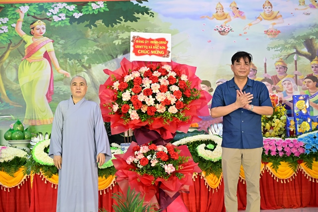 Tại buổi lễ, Chư tôn đức Ban trị sự GHPGVN huyện An Dương đã đón nhận những lẵng hoa tươi thắm kính mừng Đại lễ của Thường trực Ban trị sự GHPGVN thành phố Hải Phòng, đại diện Ban trị sự các quận huyện trong thành phố, Ban Tôn giáo Sở Nội Vụ, phòng An ninh nội địa Công an thành phố, đại diện lãnh đạo Huyện ủy, HĐND, UBND, UB MTTQVN huyện An Dương, xã Bắc Sơn, các sở ban ngành trên địa bàn huyện và đại diện Phật tử các chùa trong huyện.