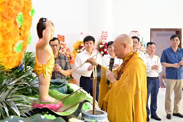 Chư tôn đức và đại biểu chính quyền cử hành nghi lễ dâng hương bạch Phật và lễ Mộc dục