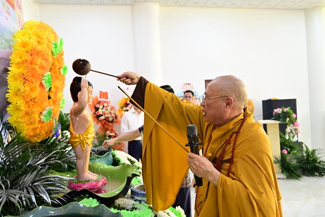 Trước khi kết thúc buổi lễ chư tôn đức, các cấp chính quyền và toàn thể đại chúng đã cử hành nghi lễ dâng hương, bạch Phật, cầu nguyện thế giới hòa bình, chúng sinh an lạc, dành một phút nhập từ bi quán tưởng niệm thâm ân của Đức Bản Sư Thích Ca Mâu Ni Phật, chư Lịch đại Tổ Sư, chư tiền bối hữu công nhân kỷ niệm 2.648 năm ngày đản sinh của Ngài và dâng kệ tắm Phật, đồng thời thực hiện nghi lễ Mộc dục theo nghi thức truyền thống của Phật giáo trong không khí hoan hỷ, trang nghiêm thành kính, ấm tình đạo vị.