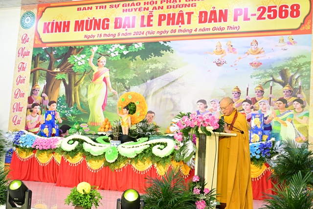 Tại buổi lễ, Chư tôn đức Ban trị sự GHPGVN huyện An Dương đã đón nhận những lẵng hoa tươi thắm kính mừng Đại lễ của Thường trực Ban trị sự GHPGVN thành phố Hải Phòng, đại diện Ban trị sự các quận huyện trong thành phố, Ban Tôn giáo Sở Nội Vụ, phòng An ninh nội địa Công an thành phố, đại diện lãnh đạo Huyện ủy, HĐND, UBND, UB MTTQVN huyện An Dương, xã Bắc Sơn, các sở ban ngành trên địa bàn huyện và đại diện Phật tử các chùa trong huyện.