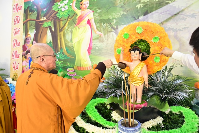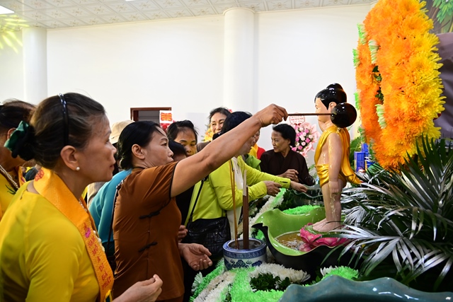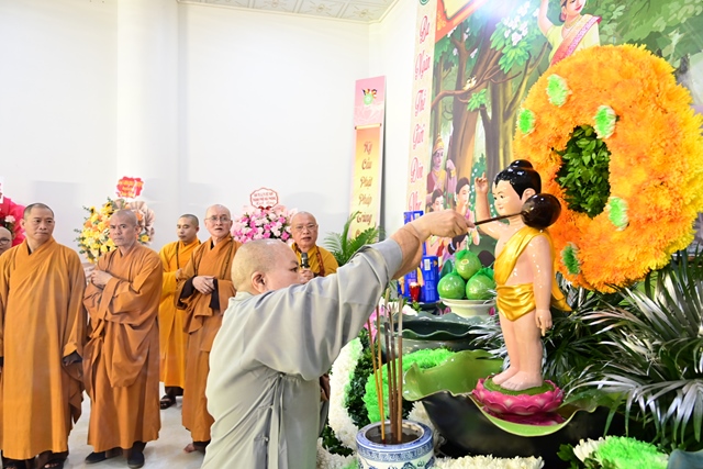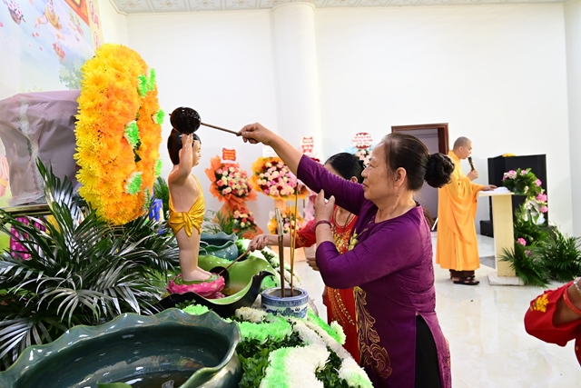 Trước khi kết thúc buổi lễ chư tôn đức, các cấp chính quyền và toàn thể đại chúng đã cử hành nghi lễ dâng hương, bạch Phật, cầu nguyện thế giới hòa bình, chúng sinh an lạc, dành một phút nhập từ bi quán tưởng niệm thâm ân của Đức Bản Sư Thích Ca Mâu Ni Phật, chư Lịch đại Tổ Sư, chư tiền bối hữu công nhân kỷ niệm 2.648 năm ngày đản sinh của Ngài và dâng kệ tắm Phật, đồng thời thực hiện nghi lễ Mộc dục theo nghi thức truyền thống của Phật giáo trong không khí hoan hỷ, trang nghiêm thành kính, ấm tình đạo vị.
