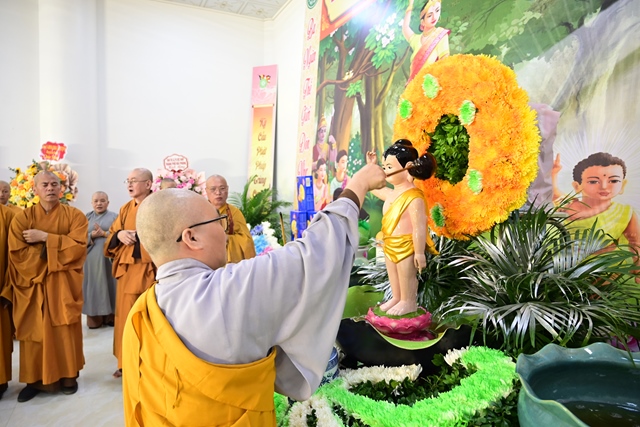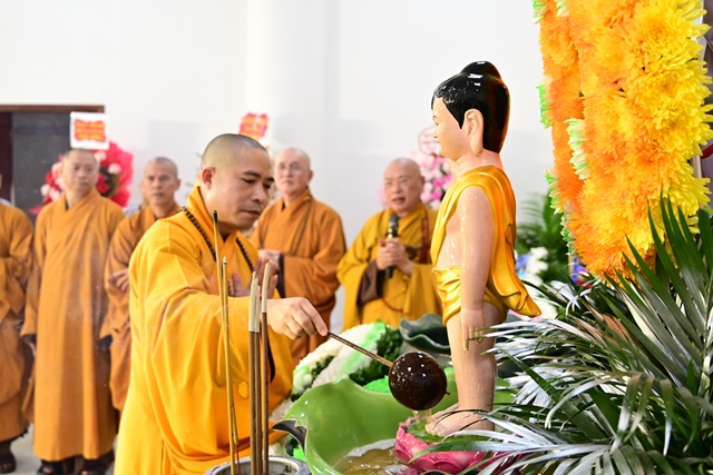 Chư tôn đức và đại biểu chính quyền cử hành nghi lễ dâng hương bạch Phật và lễ Mộc dục