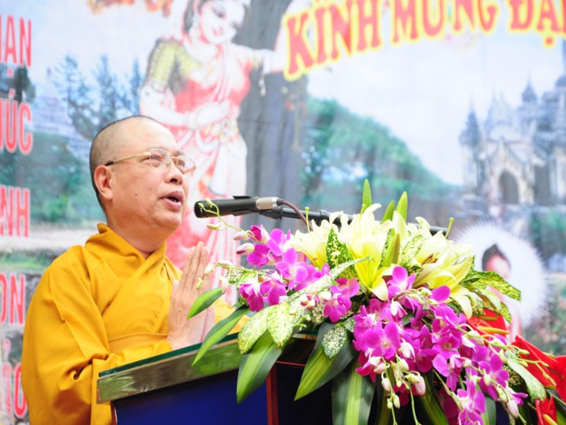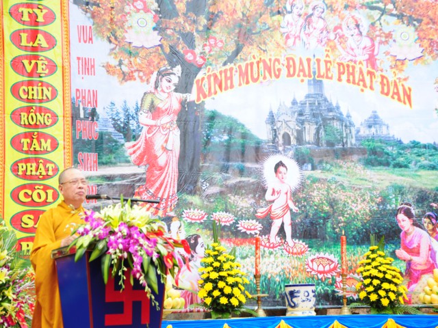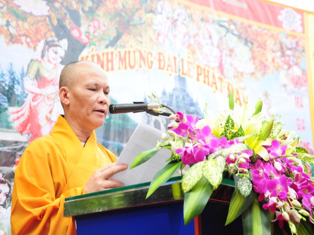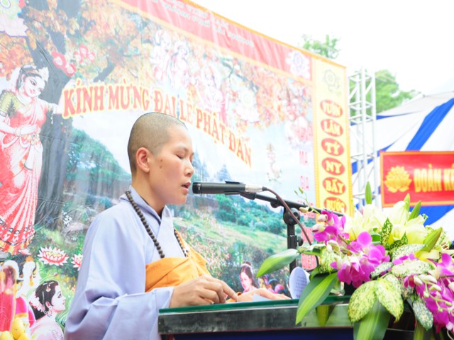 Sau khi cung tuyên Thông điệp kính mừng Phật đản của đức Pháp chủ GHPGVN, ĐĐ. Thích Tục Hạnh đã tuyên đọc Diễn văn khai mạc kính mừng Phật đản PL. 2558.