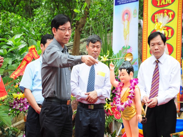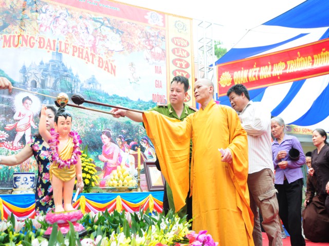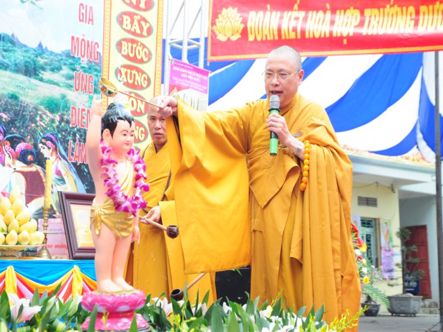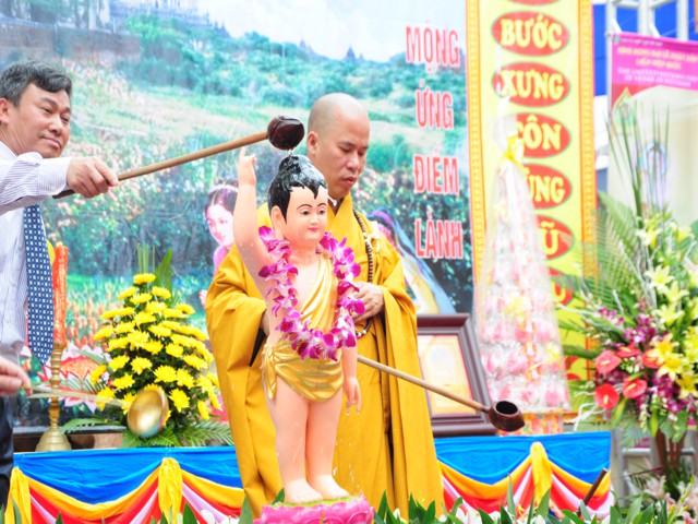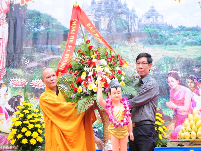 Trước khi kết thúc buổi lễ, Chư tôn đức Tăng Ni, các cấp chính quyền của thành phố, huyện Kiến Thụy và đông đảo các Phật tử đã cử hành nghi lễ niêm hương, bạch Phật cầu nguyện Quốc thái dân an và nghi lễ tắm Phật truyền thống của Phật giáo.